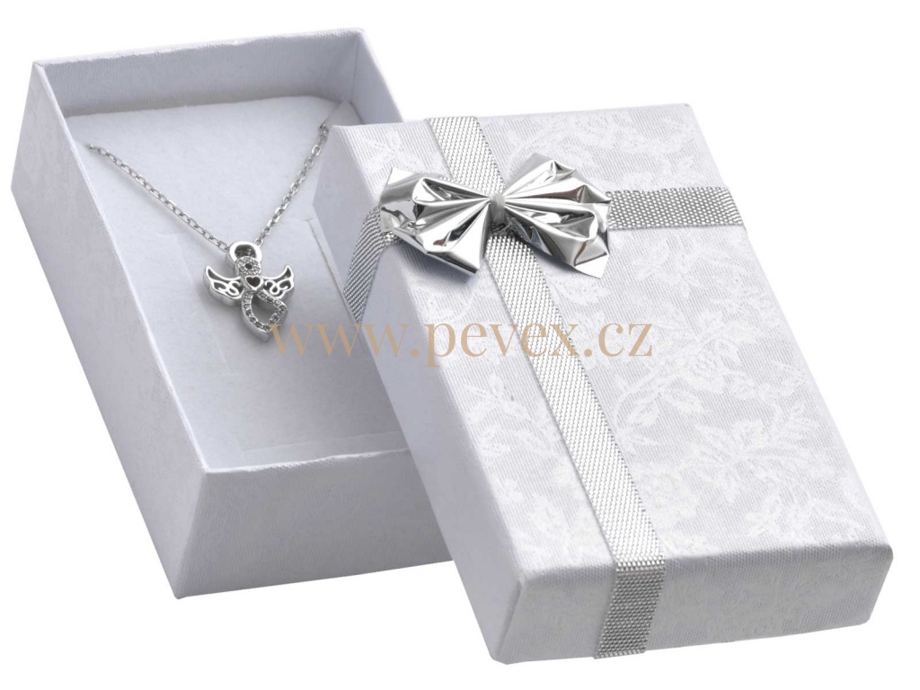 Papírová krabička s mašlí na malou sadu šperků. Molitanová vložka s průseky.