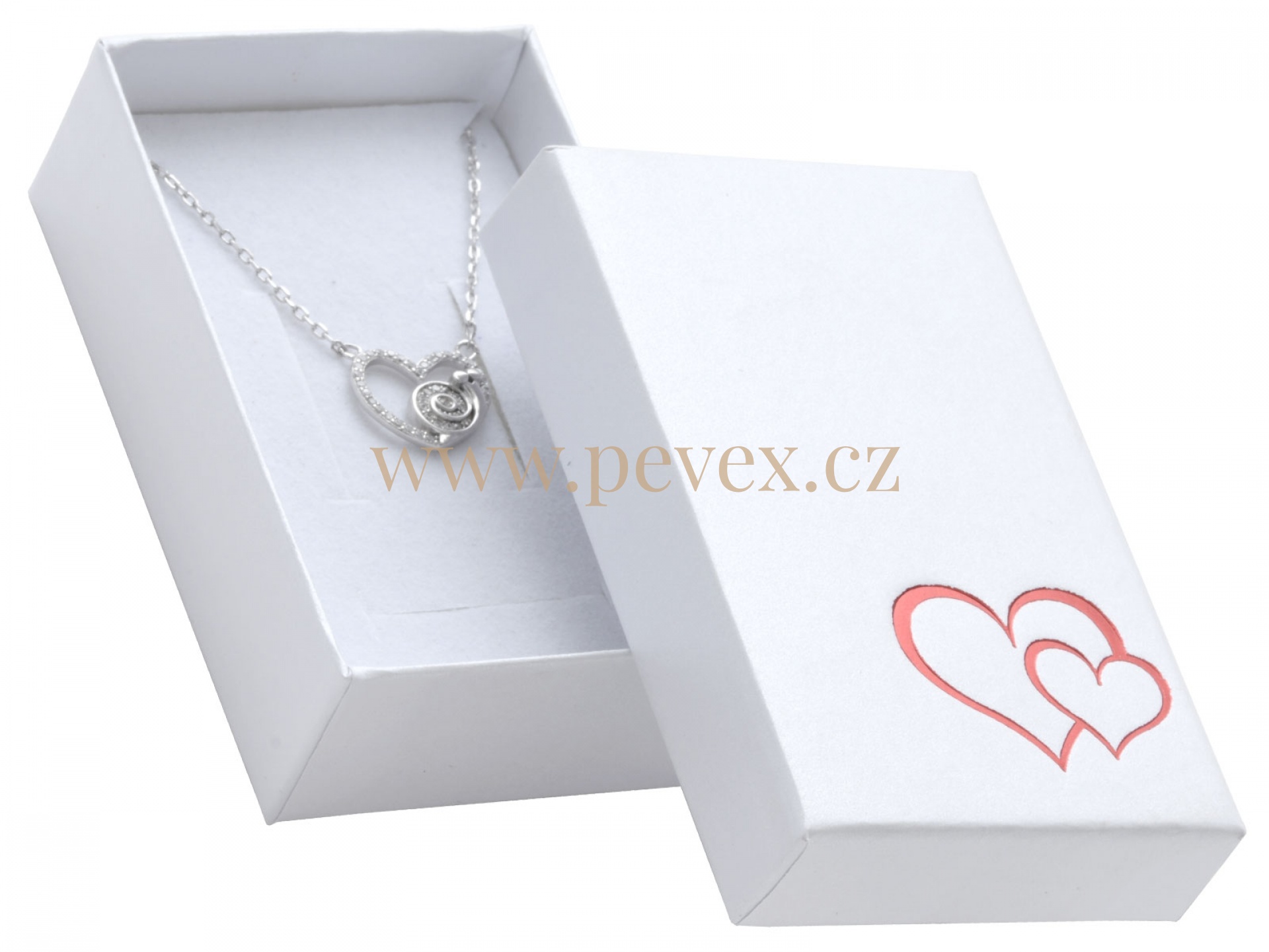 Papírová krabička s ražbou srdce " Valentýn" a molitanovou vložkou pro malou sadu šperků.