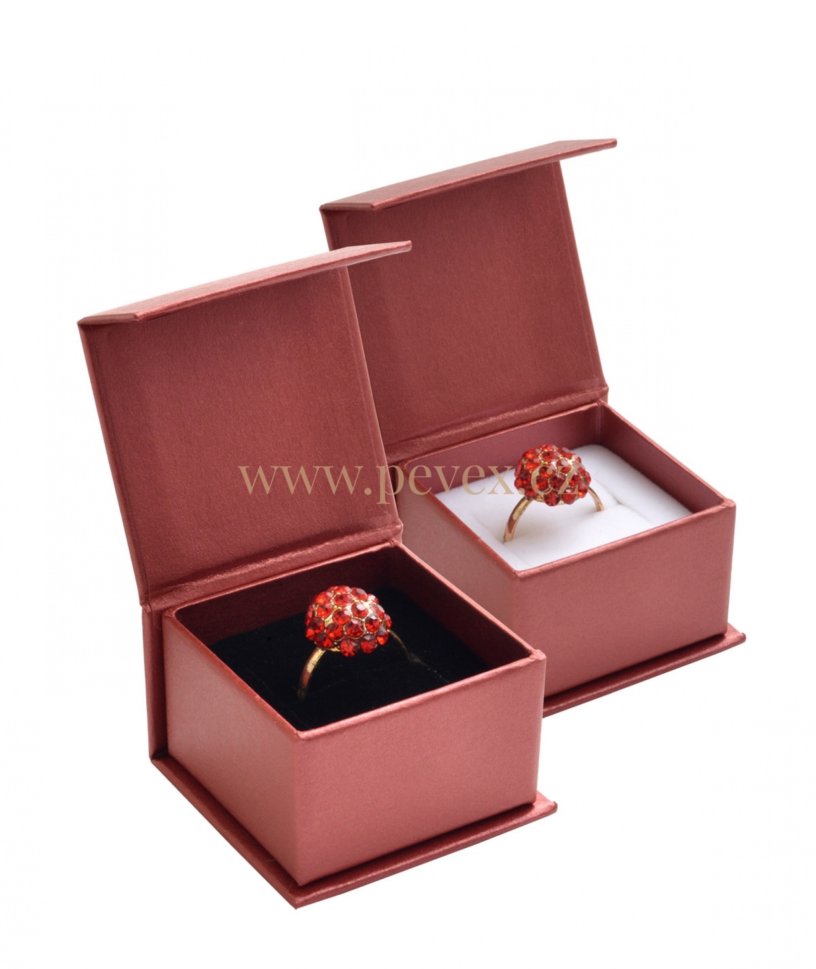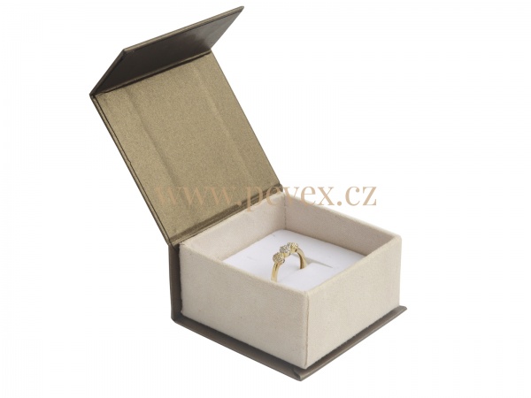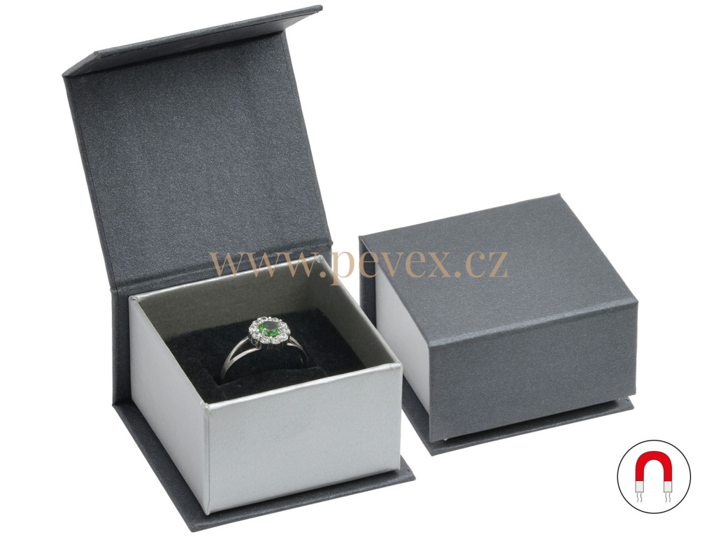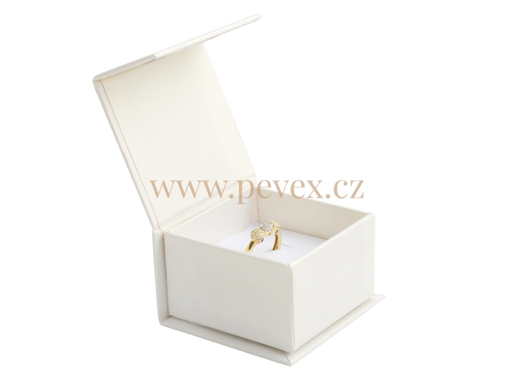 Papírová krabička s magnetickým uzávíráním. Molitanová vložka s bílou/černou úpravou s průseky na prsten.