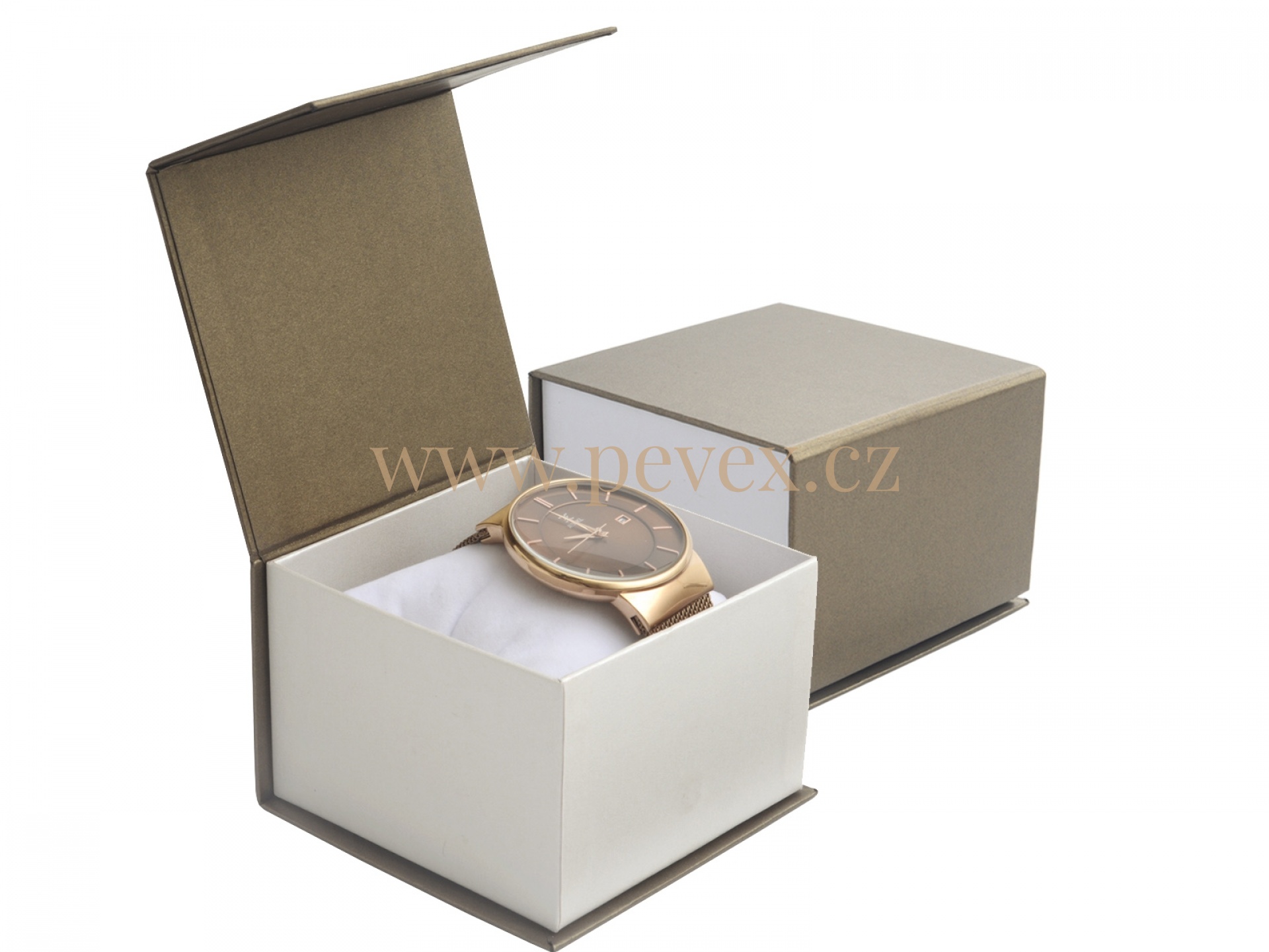 Papírová krabička s magnetickým zavíráním. Polštářek na hodinky nebo náramek.