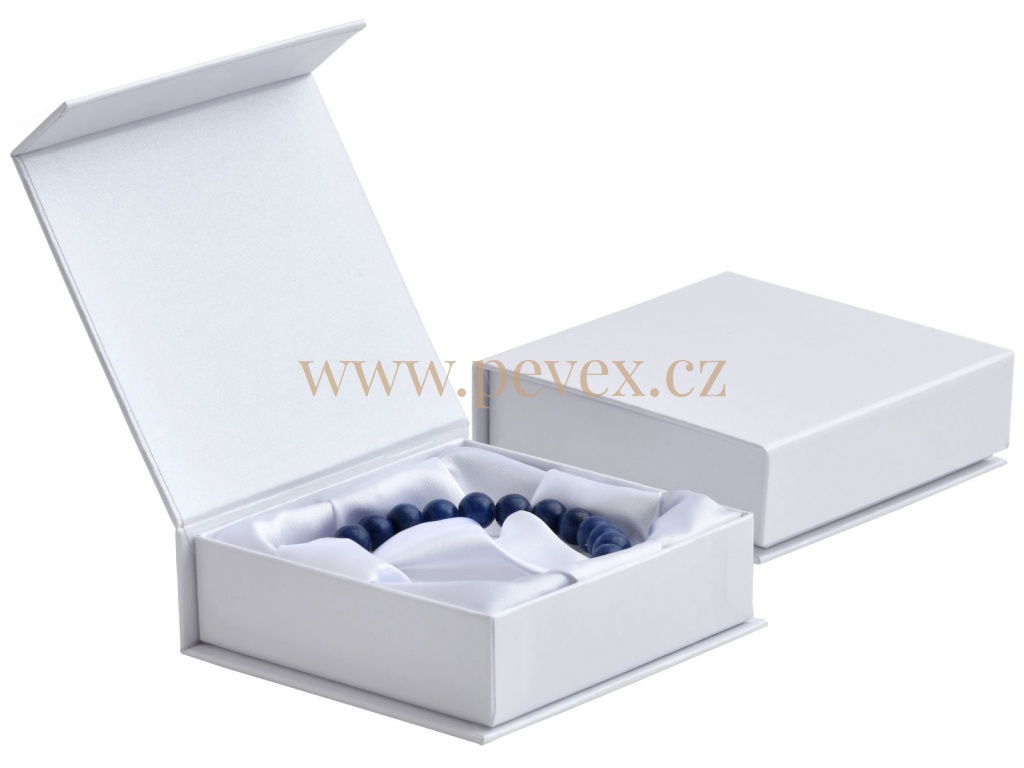 Papírová krabička s magnetickým zavíráním. Saténová vložka na náramek.