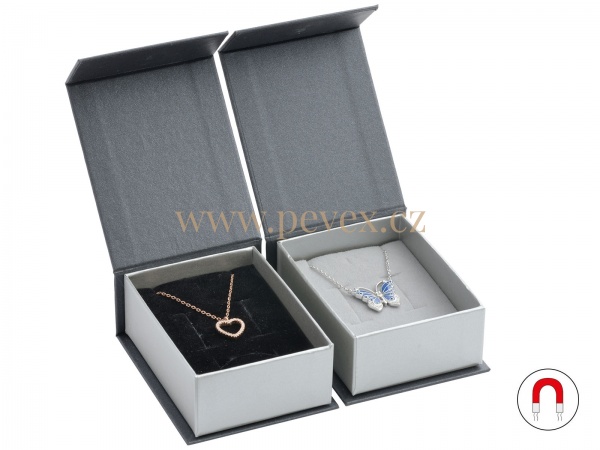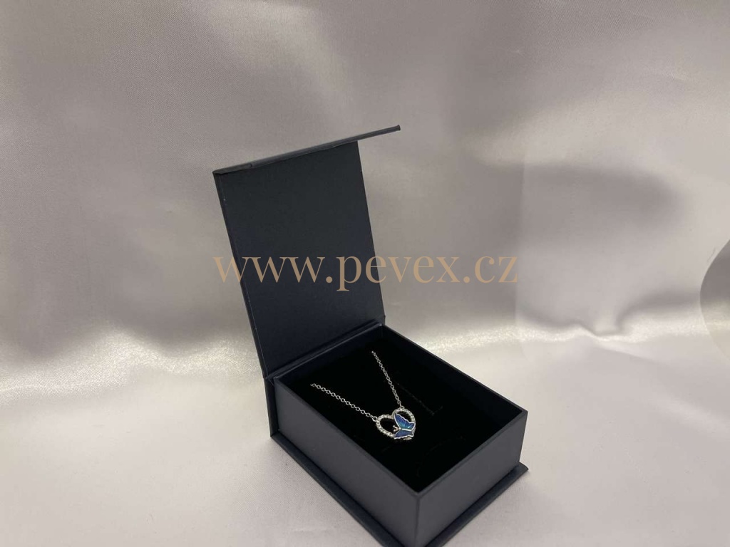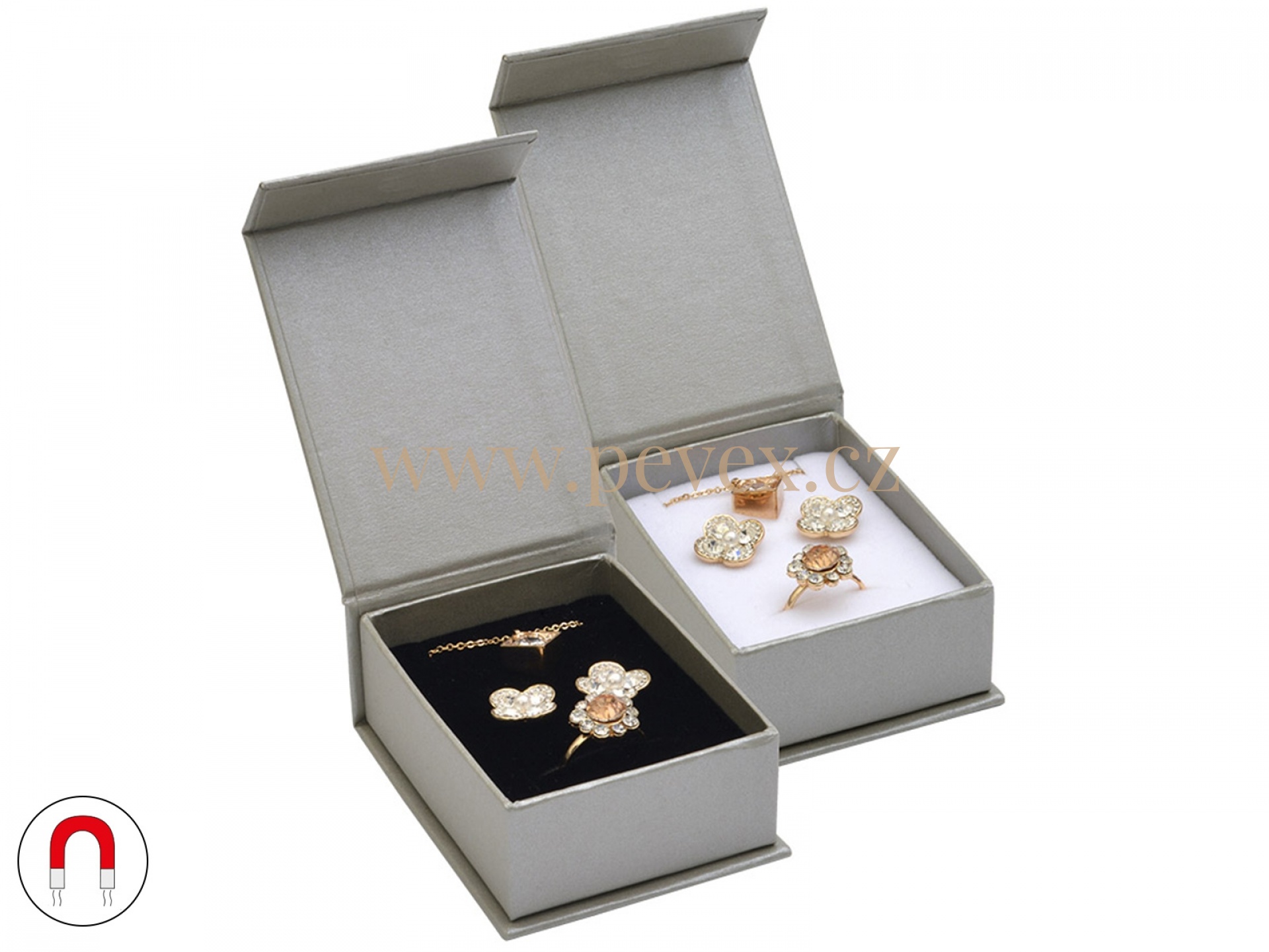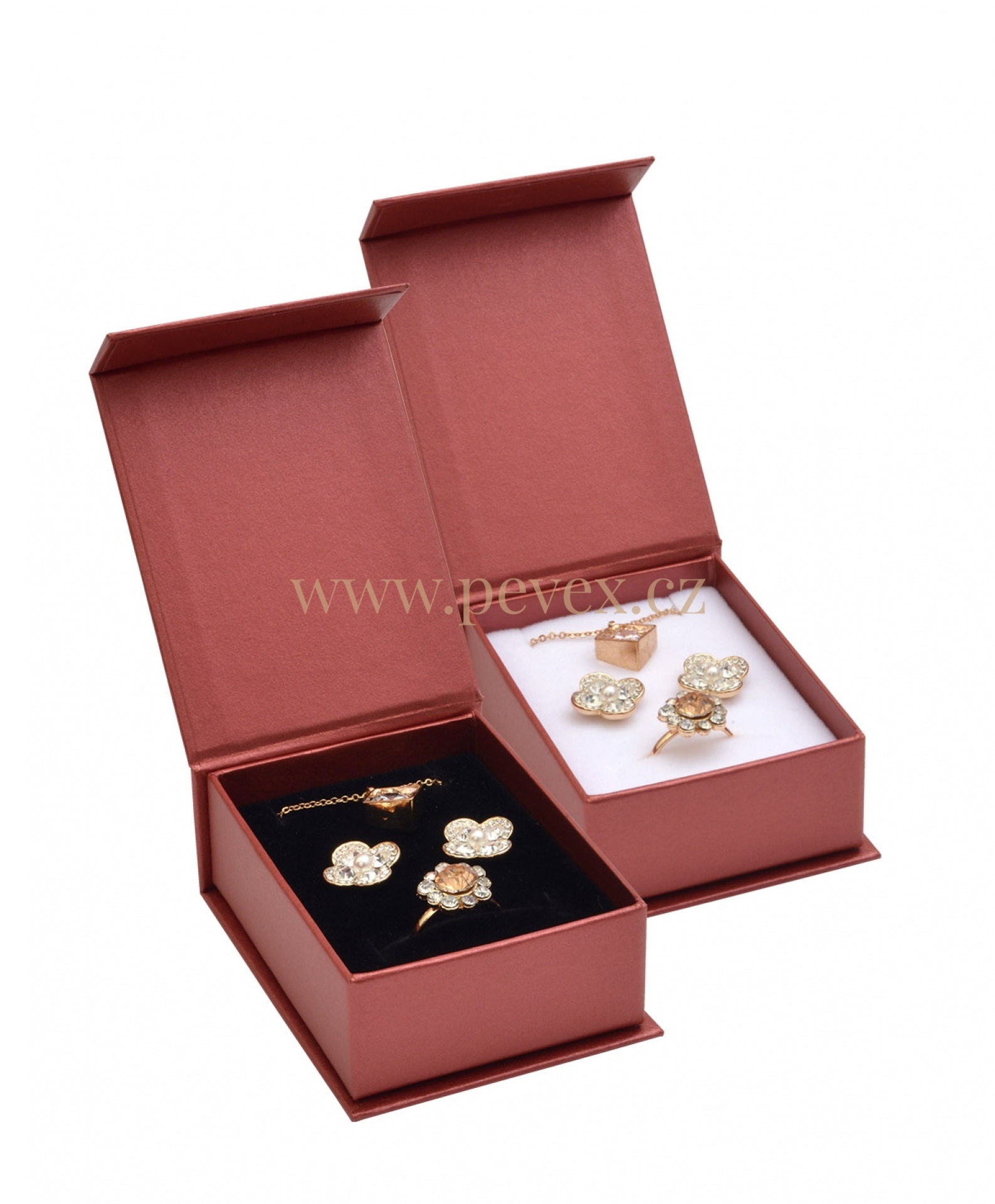 Papírová krabička s magnetickým zaviráním. Molitanová vložka s průseky na menší sadu šperků.