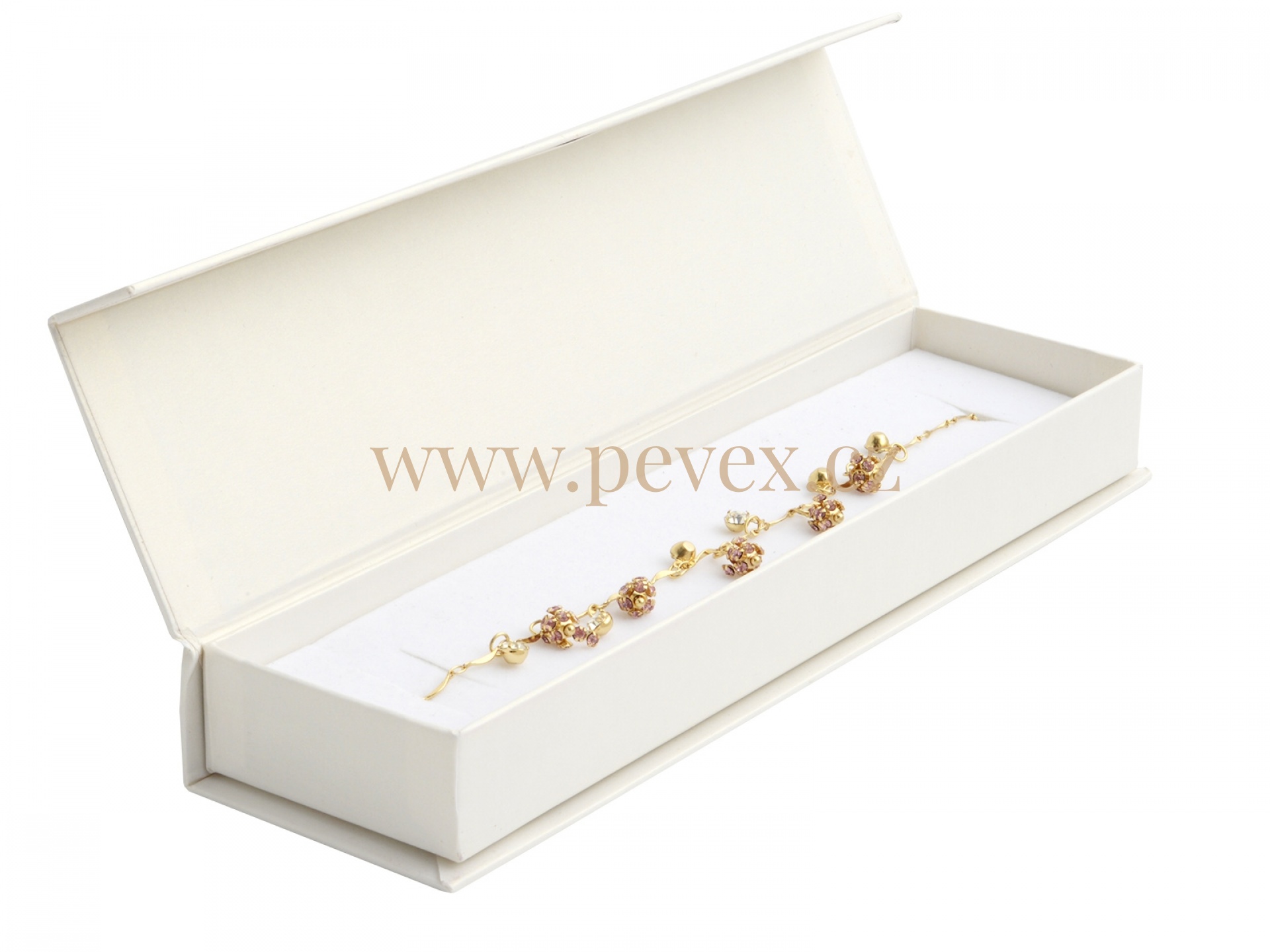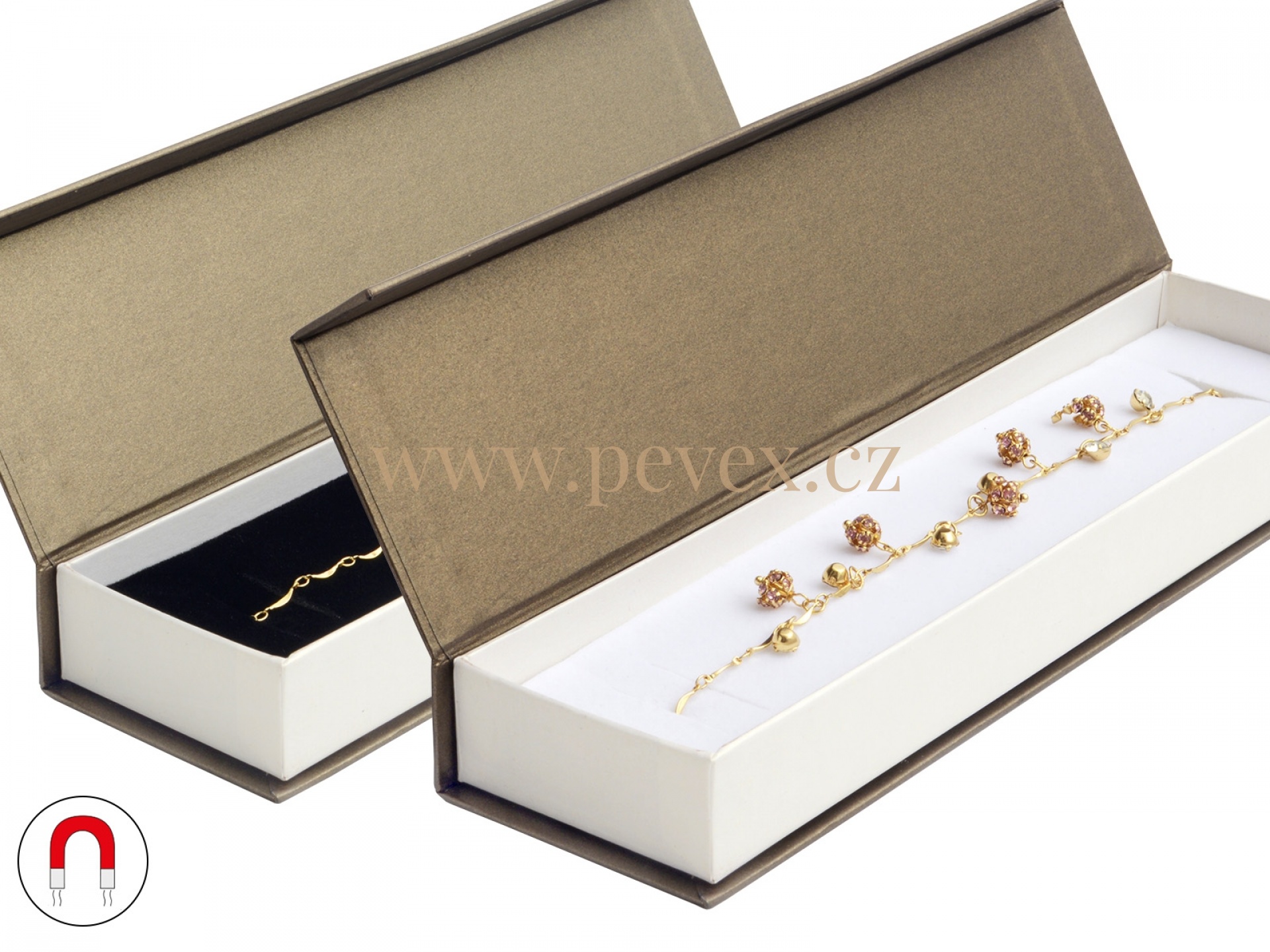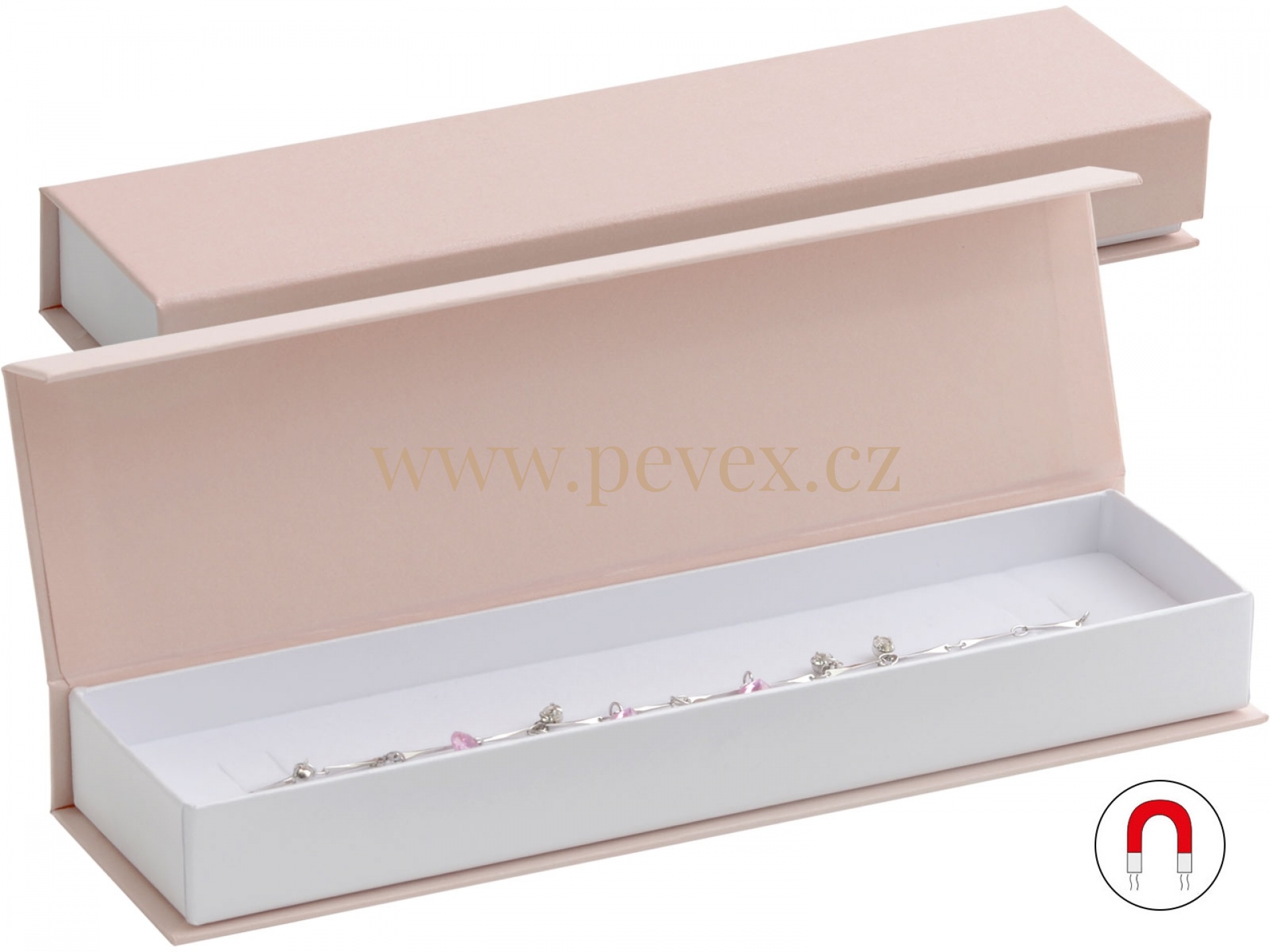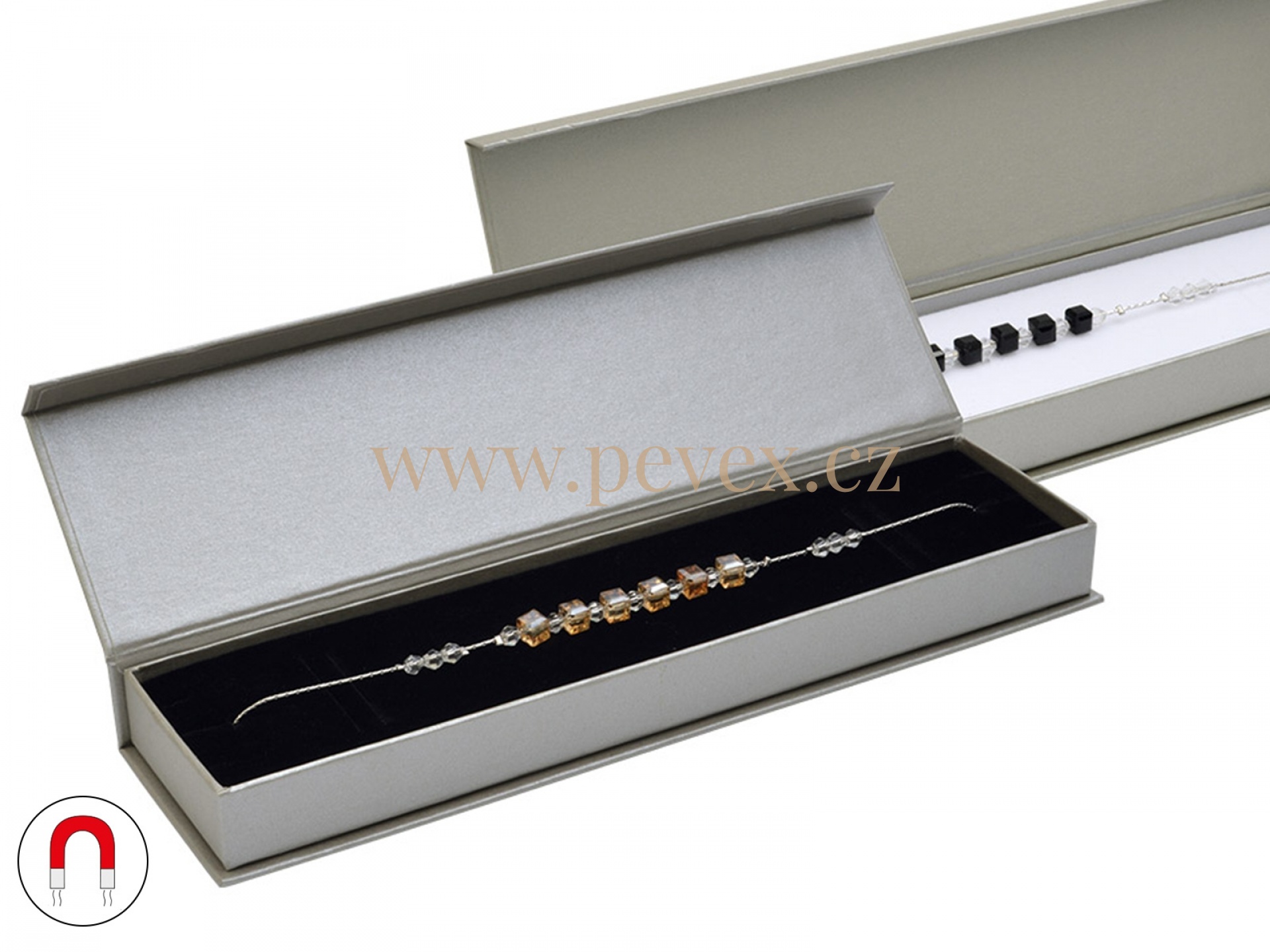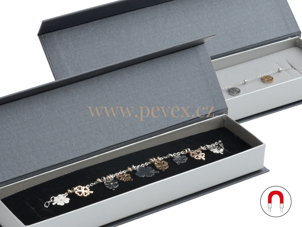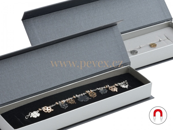 Papírová krabička s magnetickým zavíráním. Molitanová vložka s průsekem na náramek.