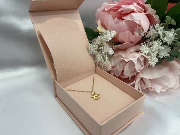 Papírová krabička s magnetickým zavíráním. Molitanová vložka s průseky na šperky + překryvná sametová vložka.