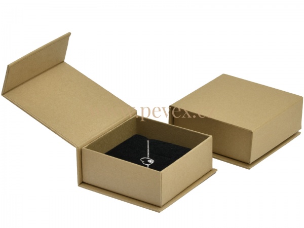 Papírová krabička potažená přírodním papírem a zavíráním na magnet. Molitanová vložka s průseky na šperky.