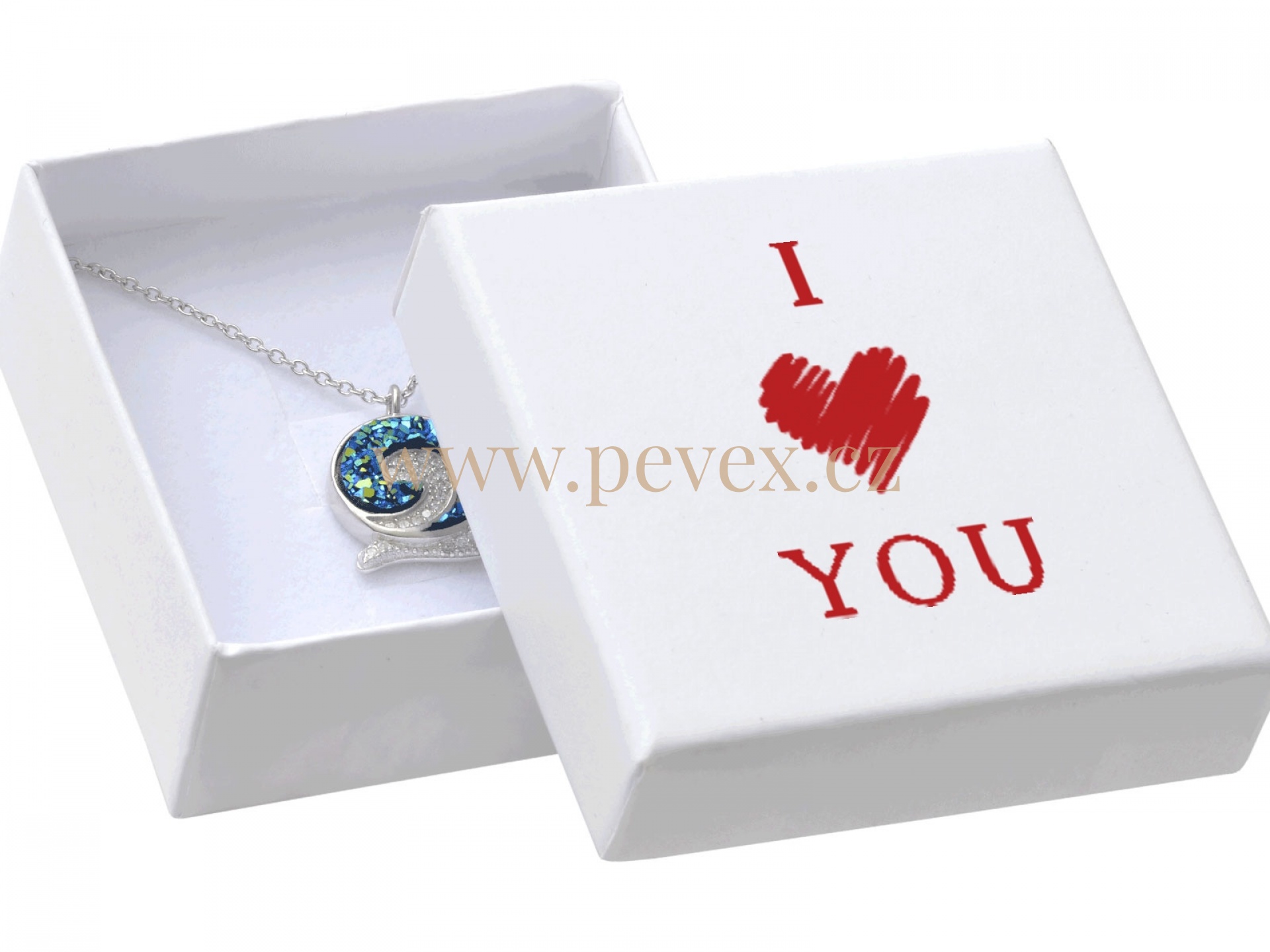 Papírová krabička s potiskem I love you. Molitanová vložka s průseky na malou sadu šperků.