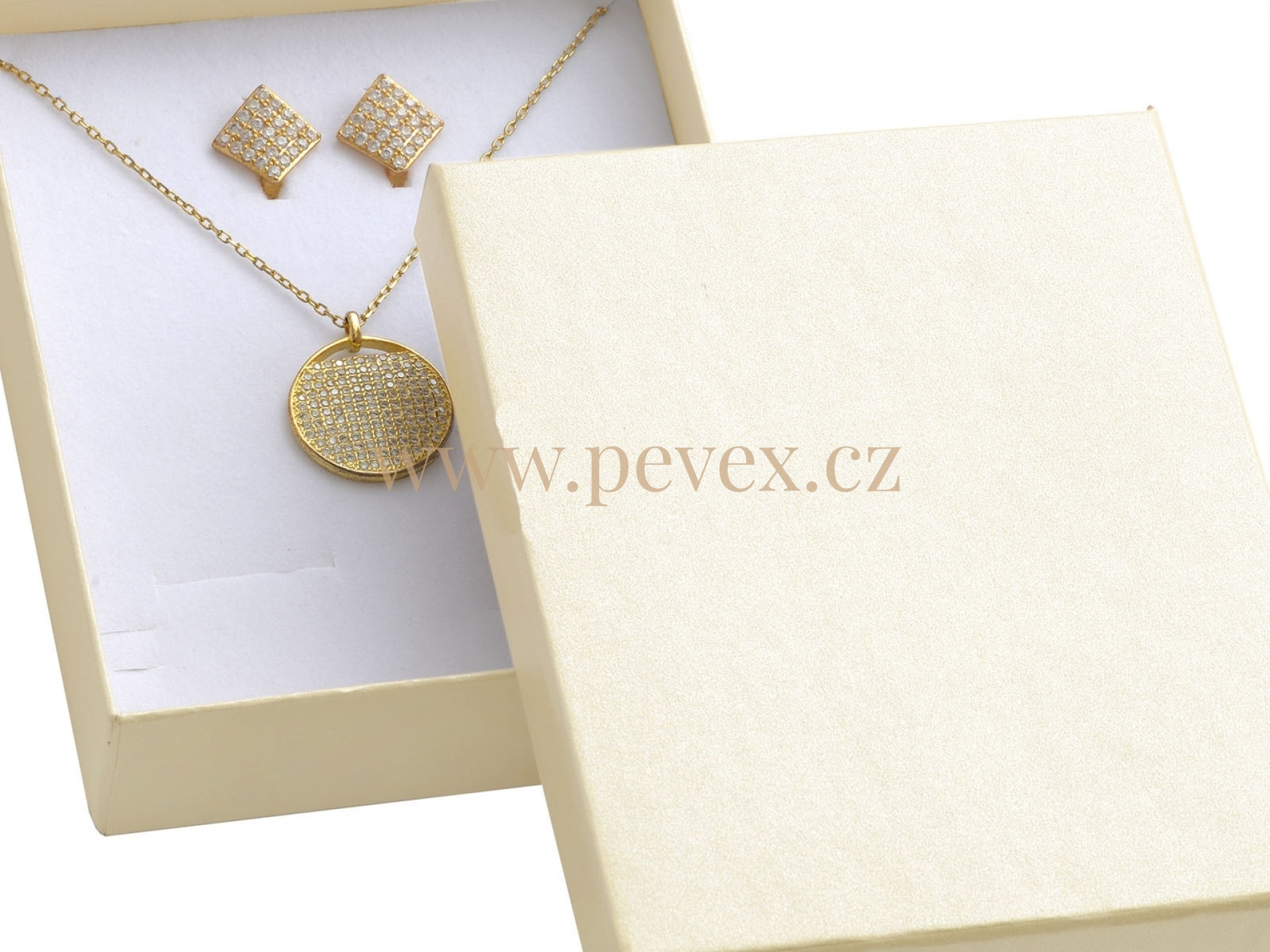 Papírová krabička určená pro větší sadu šperků. Vnitřní vložka molitanová s průseky na šperky.