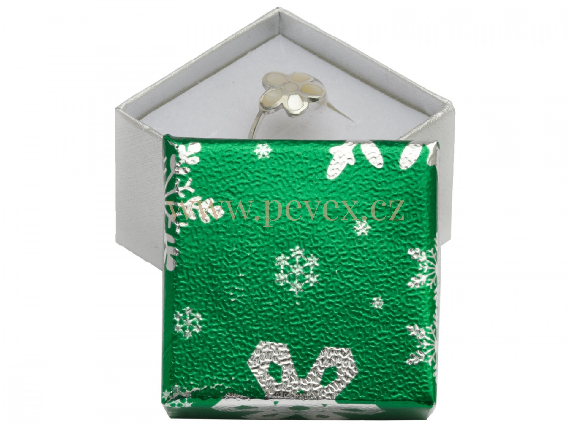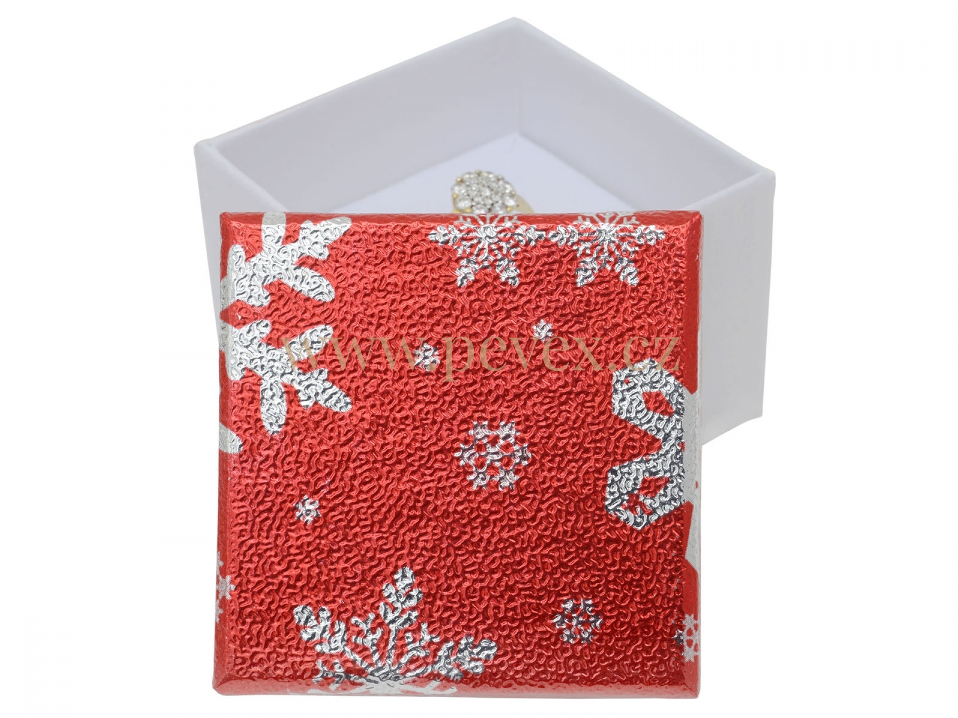 Krabička potažená papírem s vánočním motivem. Molitanová vložka s průseky na šperky.