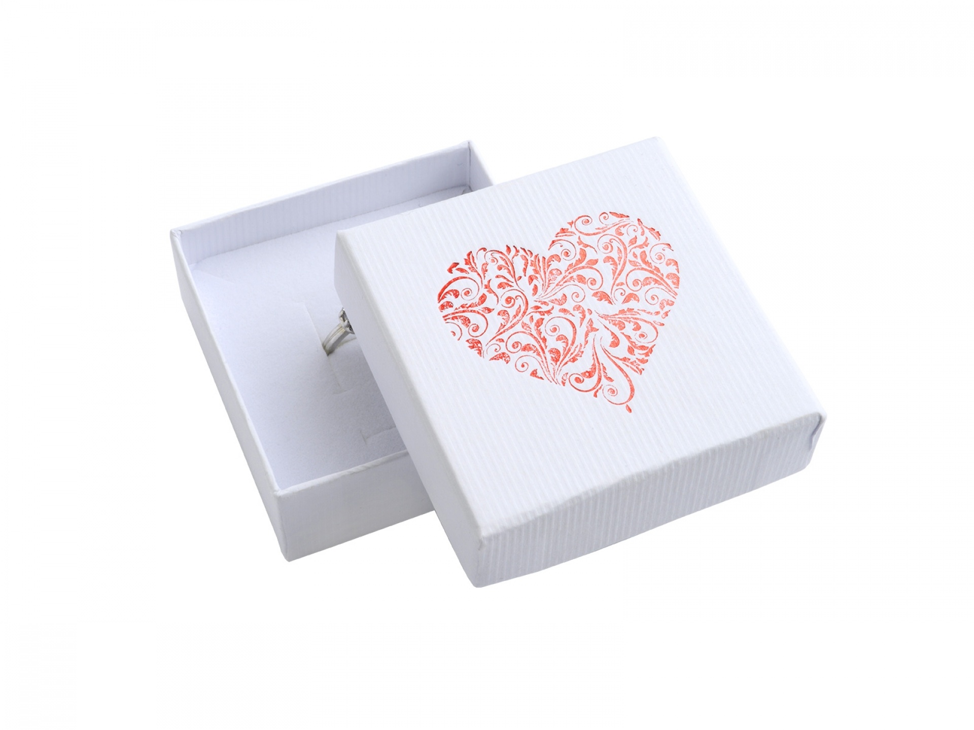 Papírové krabičky s ražbou srdce, molitanová vložka pro šperky.
