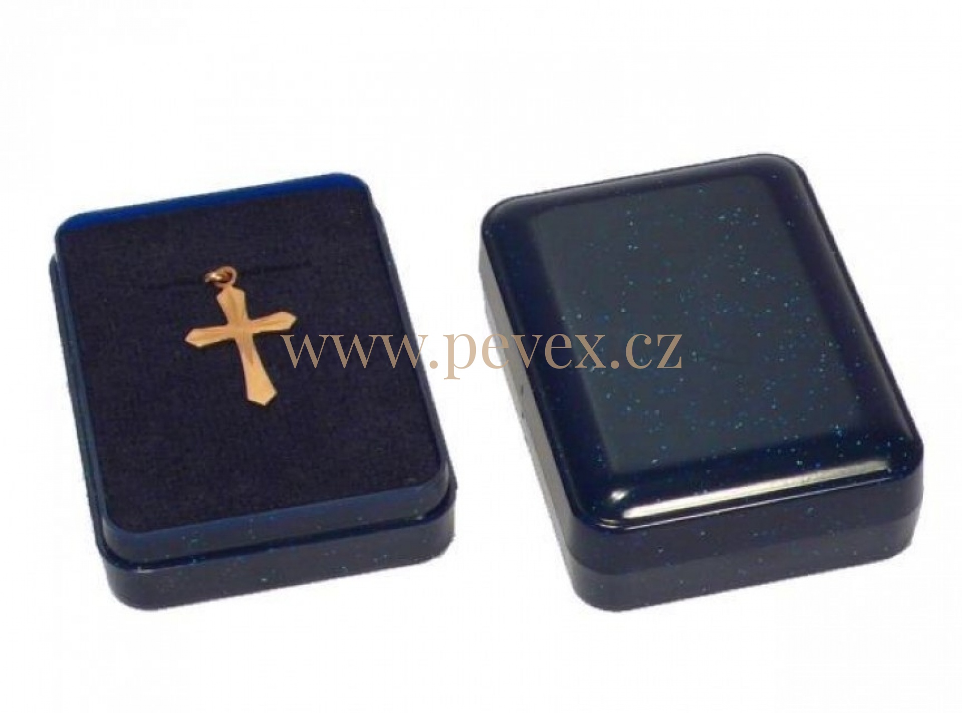 Plastová krabička pro řetízek, náušnice nebo přívěsek. V krabičce je bílý molitan s průseky.