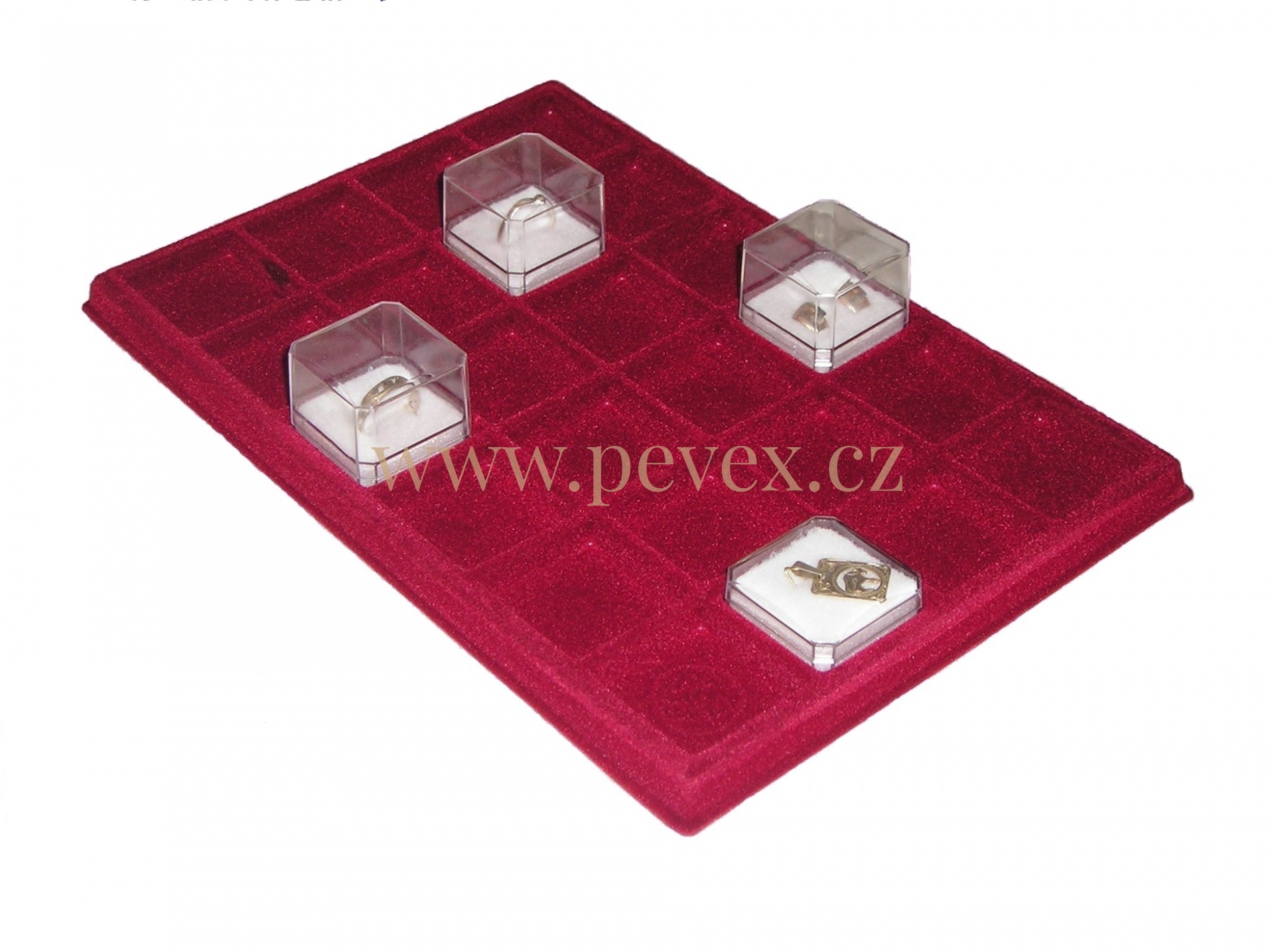 Plato s flokované fólie na vložení plastových krabiček 38 x 38 mm. Plato je vystužené proti ohýbání.