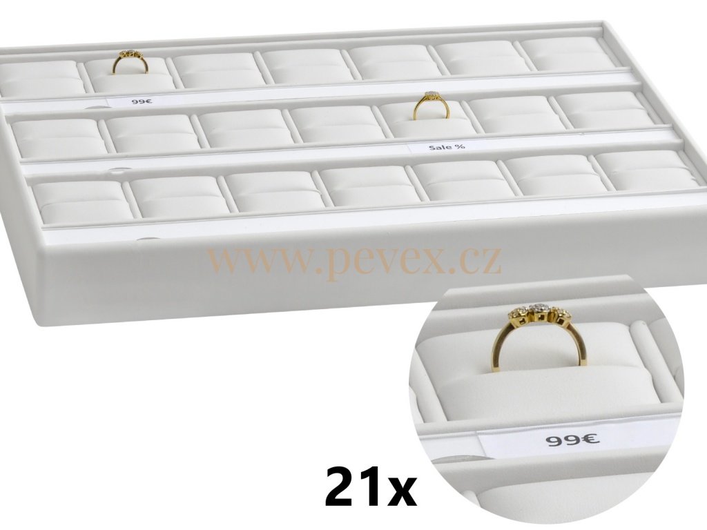 Koženkové plato pro 21 prstenů. Možnost umístění cenovky.