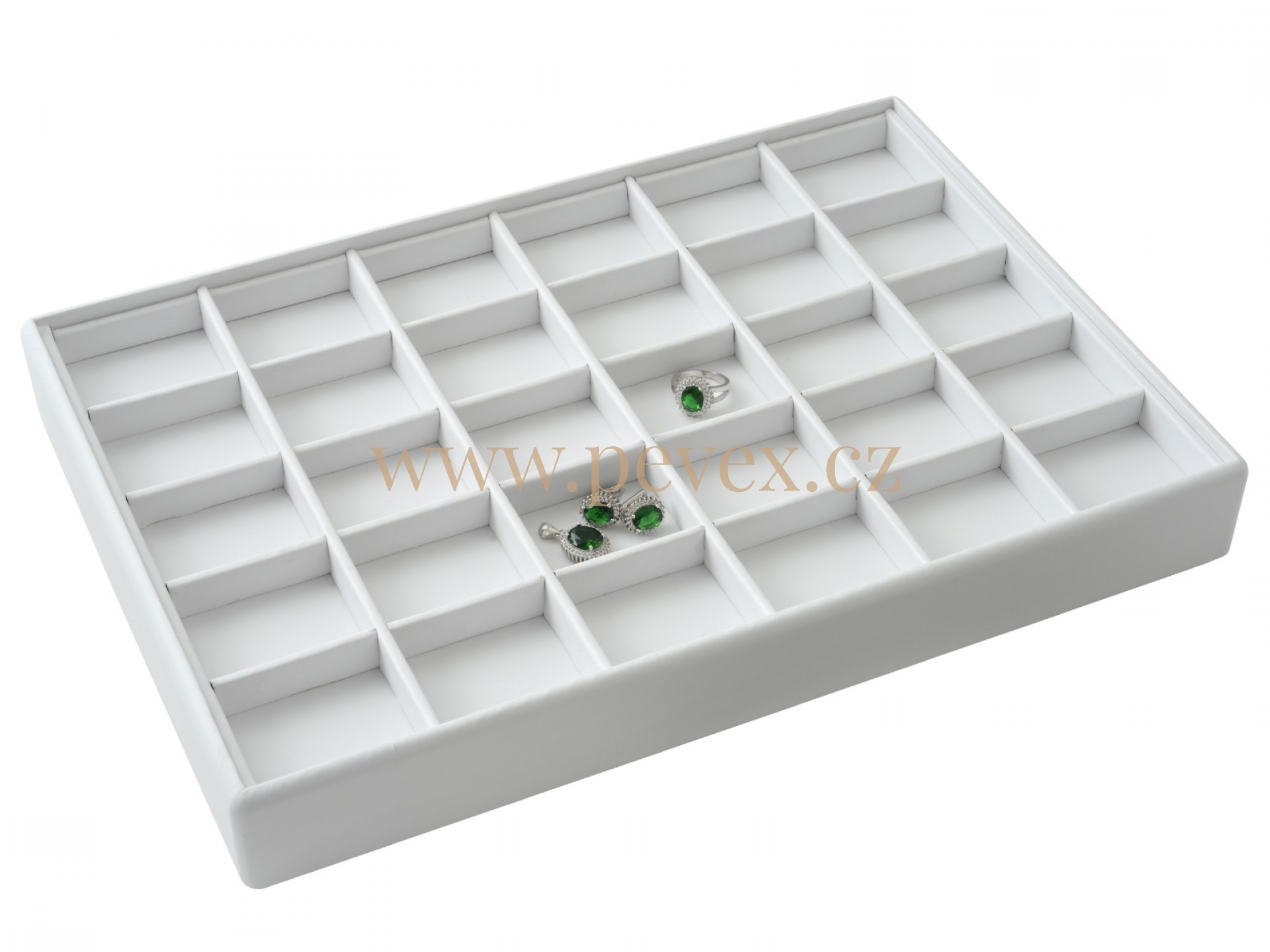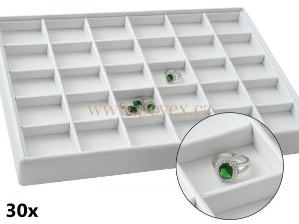Koženkové plato pro vystavení kamenů nebo jiných šperků. 30 ks příhrádek.