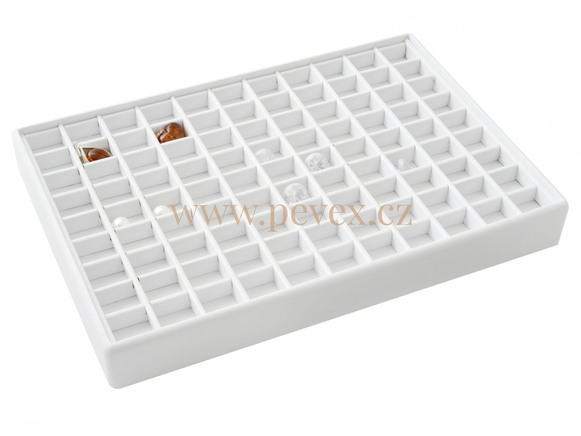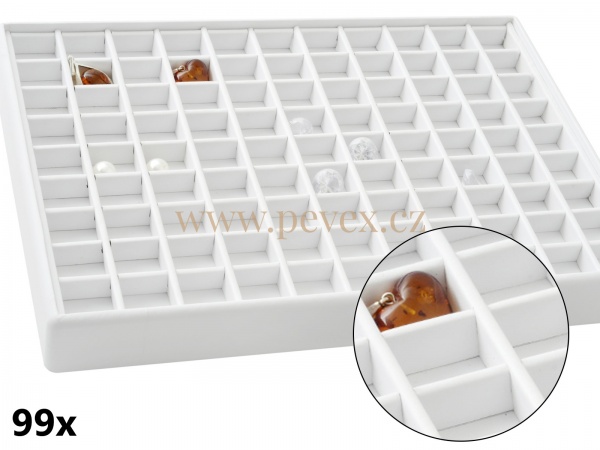Koženkové plato pro vystavení kamenů nebo jiných předmětů. 99 ks příhrádek.