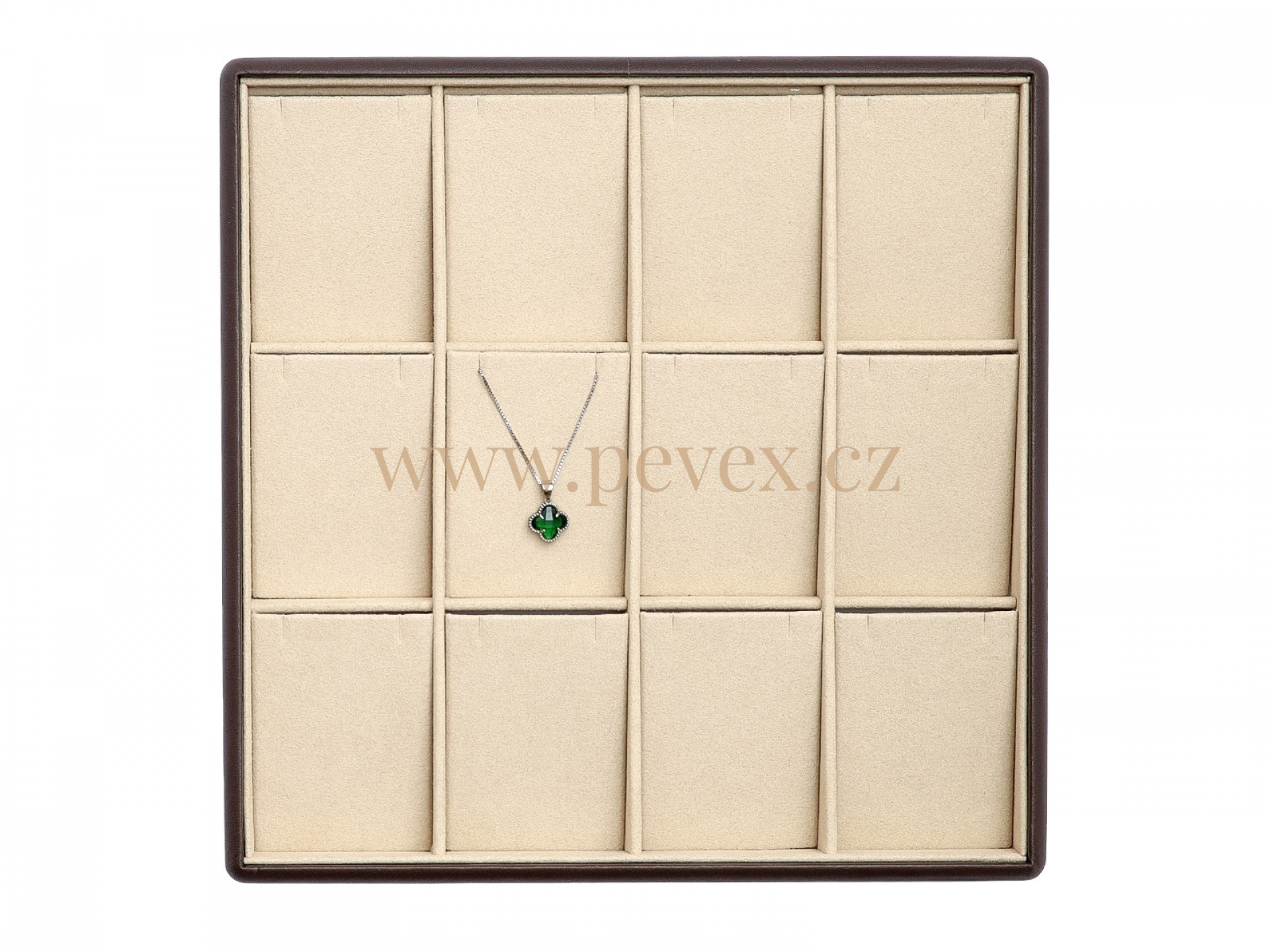 Koženkové plato na vystavení přívěsků, náušnic a řetízků.