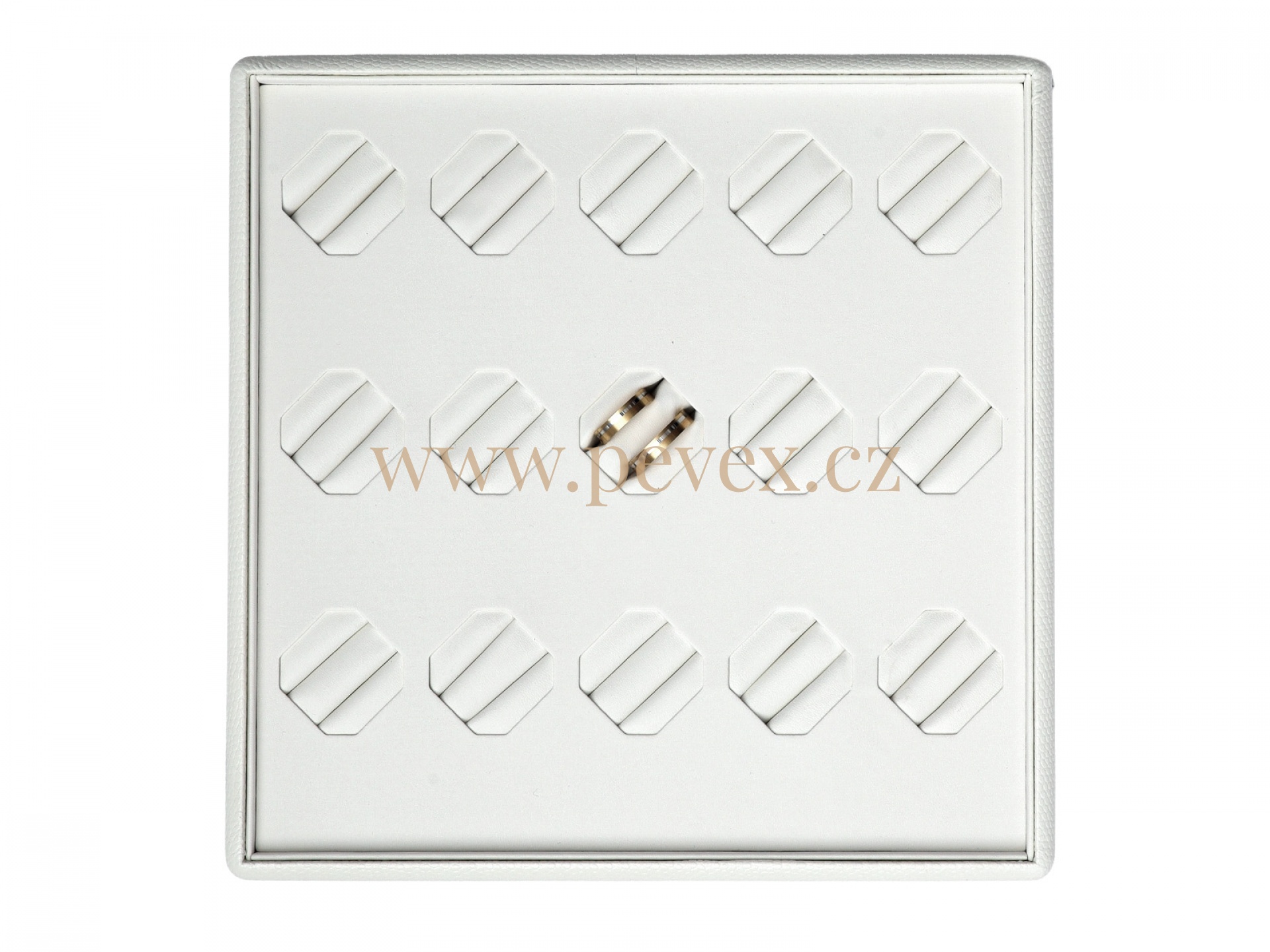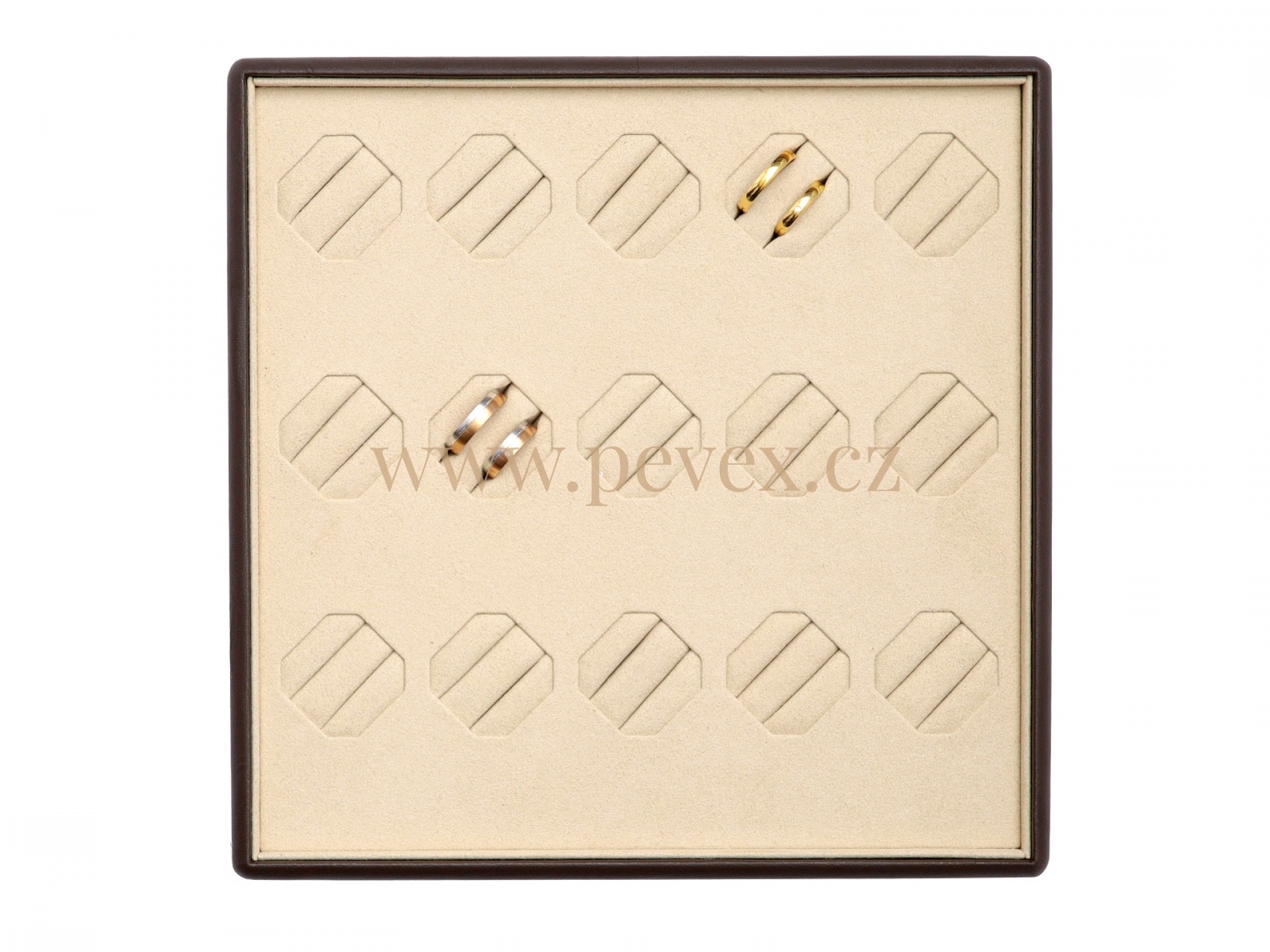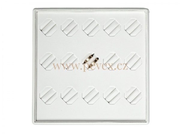 Koženkové plato na vystavení snubních prstenů.