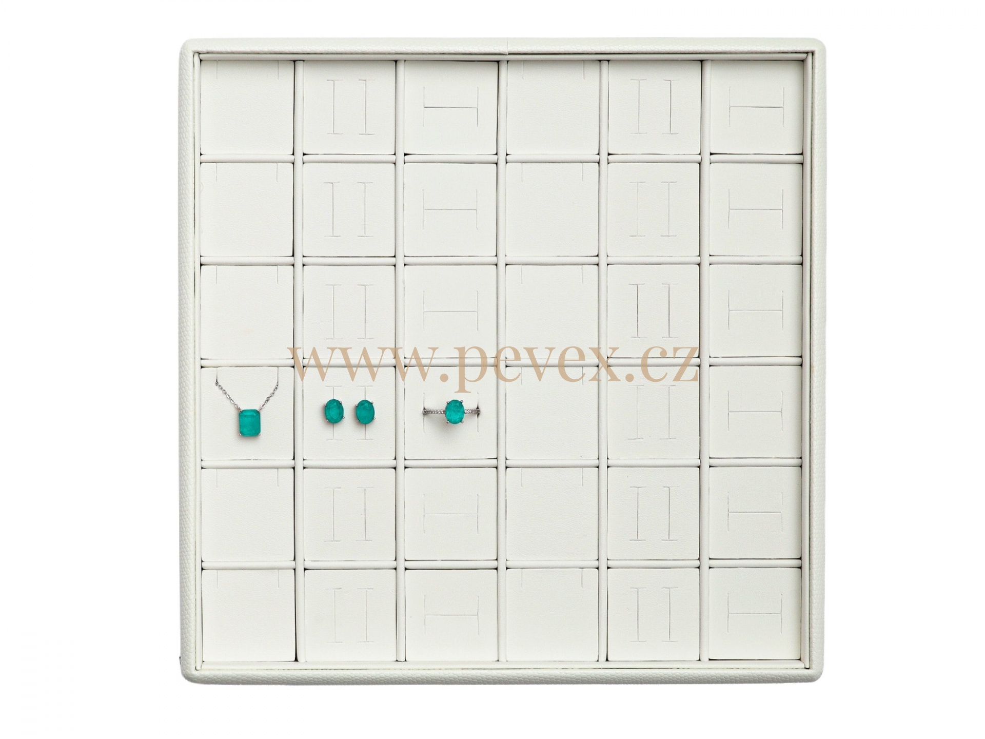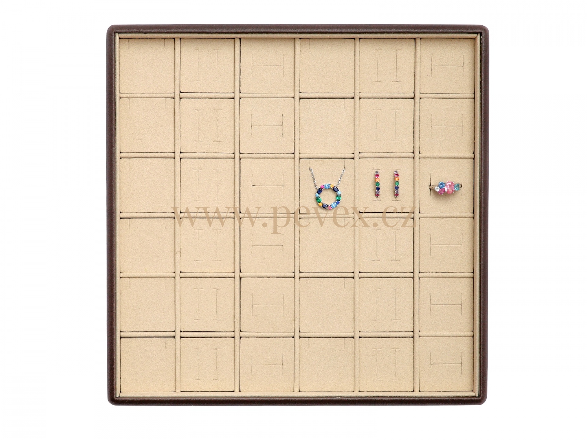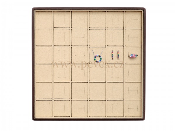 Koženkové plato na prezentaci různých šperků. Kombinované vložka na šperky.