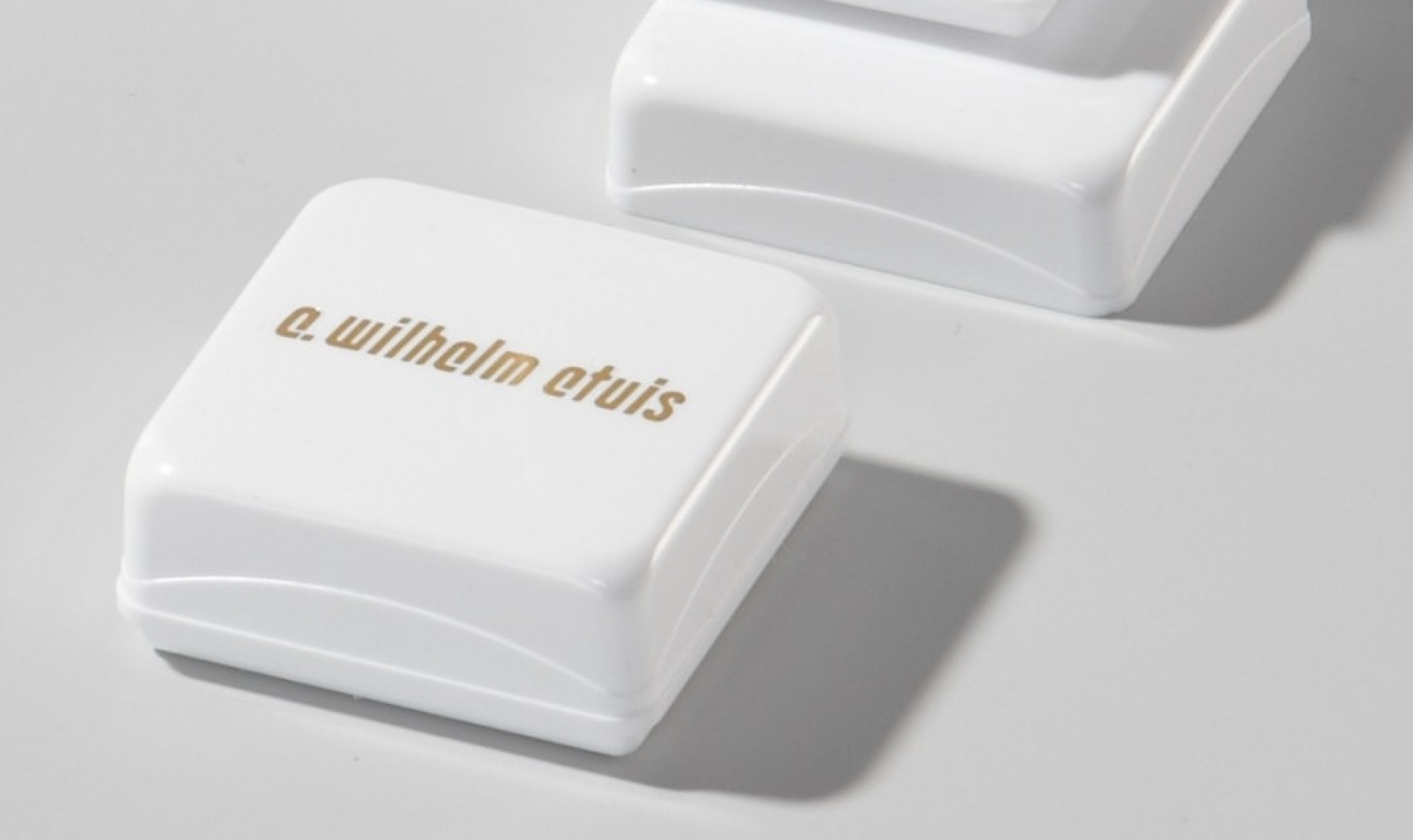 Krabičky potiskujeme metodou horké ražby zlatou, stříbrnou popř. barevnou fólií. Tiskneme pouze jednobarevný potisk, soutisky barev neděláme. Pro potisk je třeba zhotovit kovový štoček ( jako jednorázová investice). Návrh loga pro potisk zašlete e-mailem ve formátu .cdr,.pdf. ( Černé logo na bílém podkladu). Cena štočku je účtována dle velikosti loga, obvykle 500,- Kč bez DPH do velikosti 9 x 5 cm.