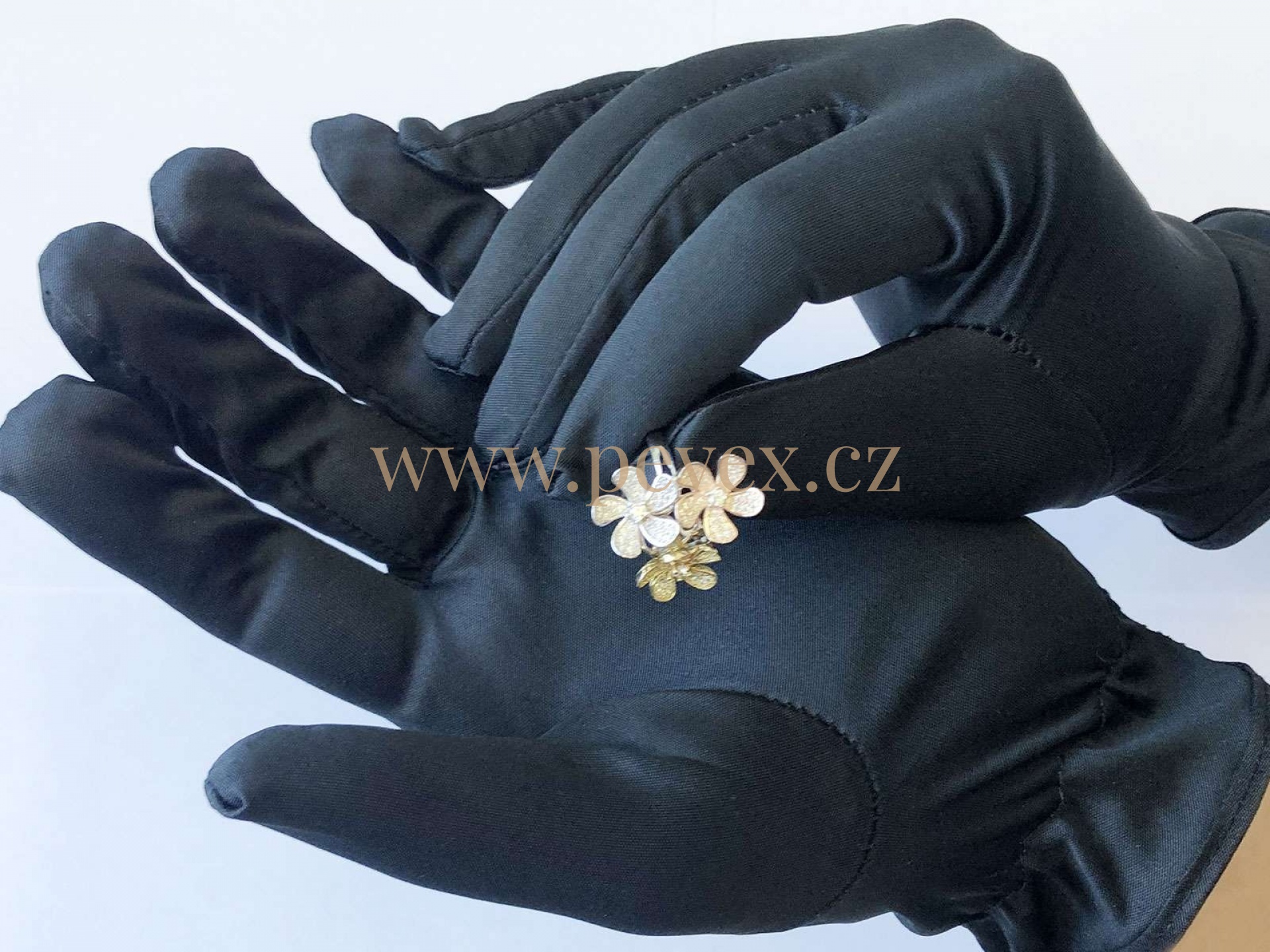 Klenotnické rukavičky pro prezentaci šperků.