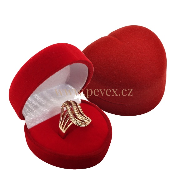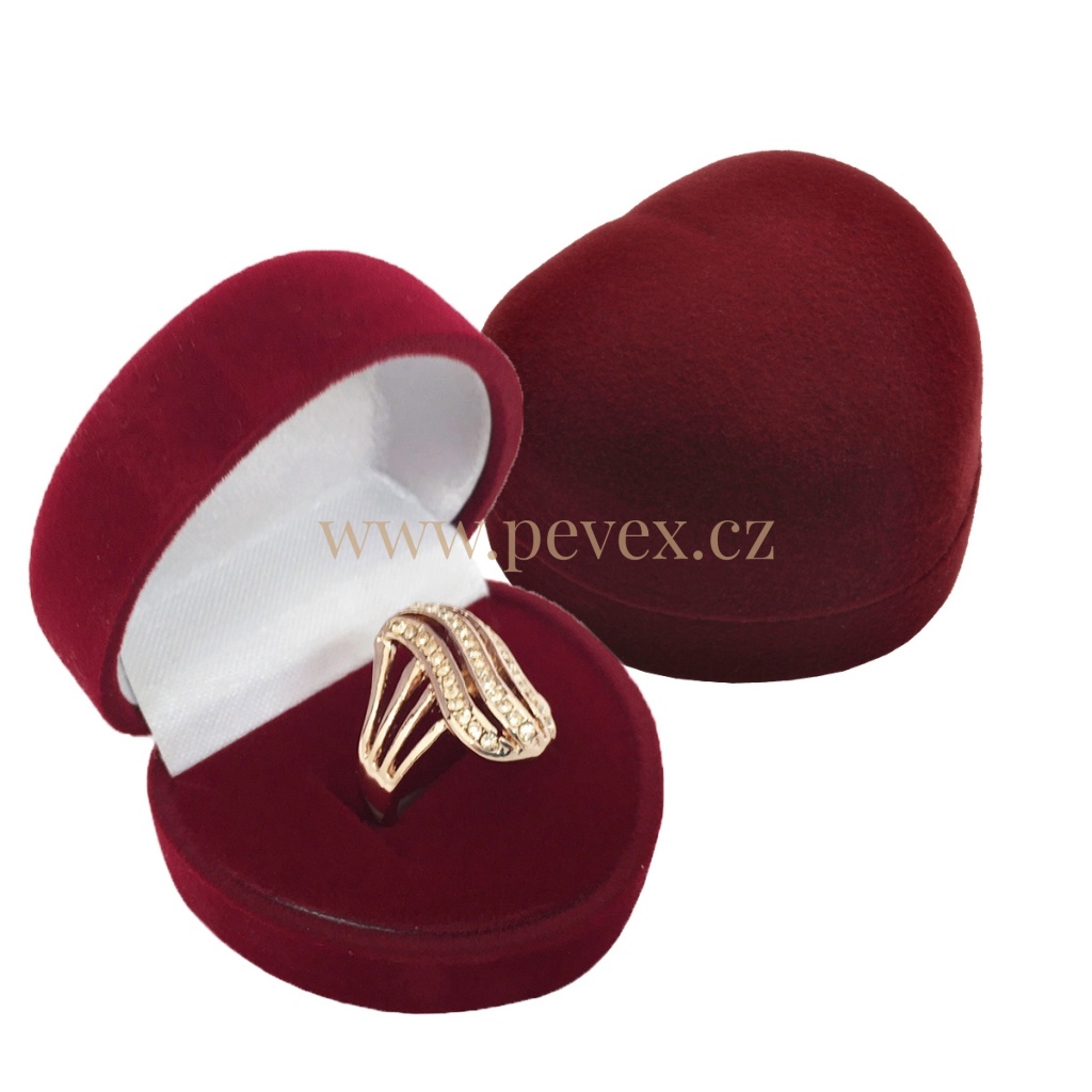 Sametová krabička se sametovou vložkou s výřezy na prsten a náušnice.