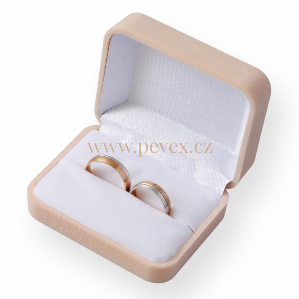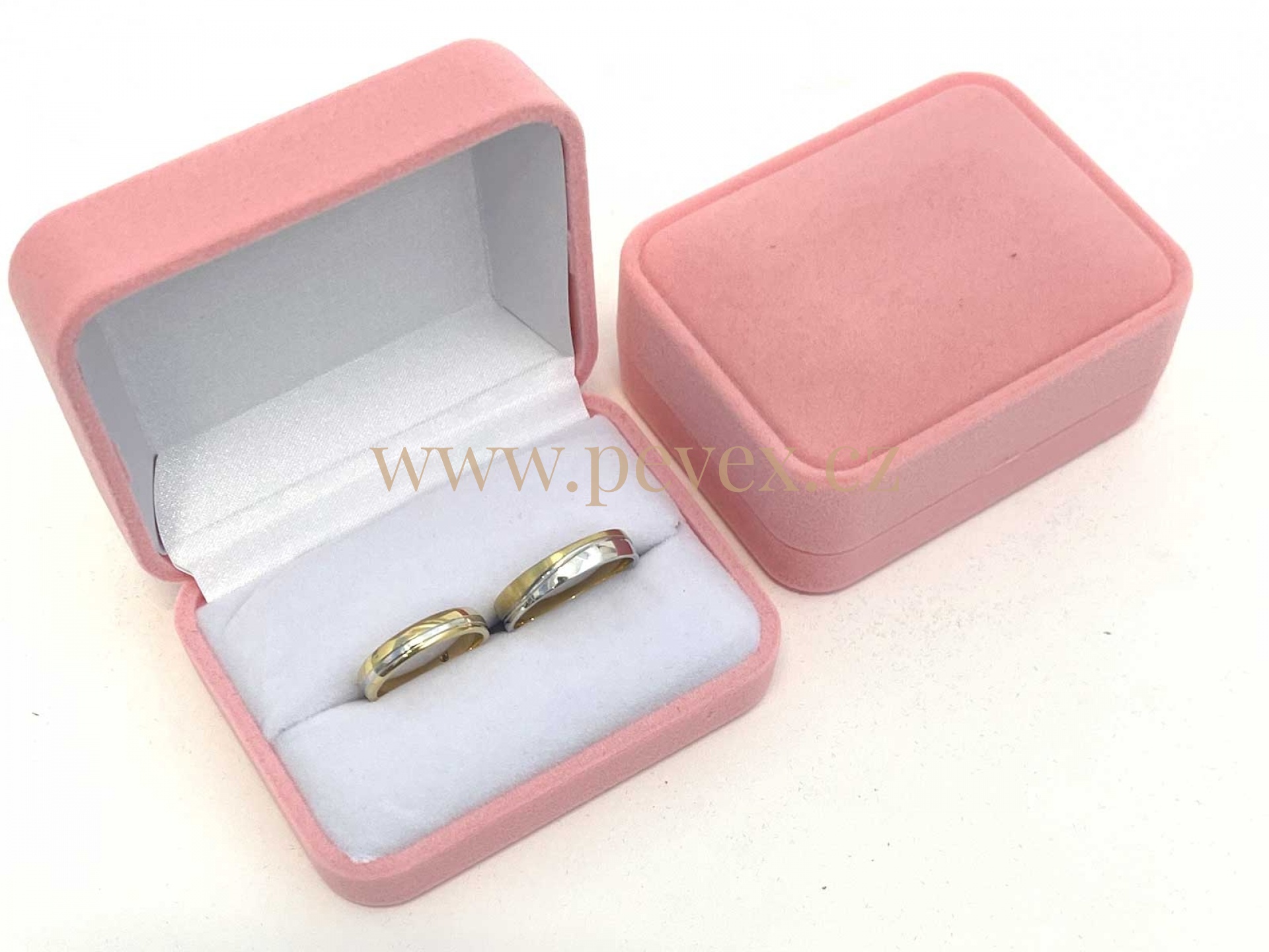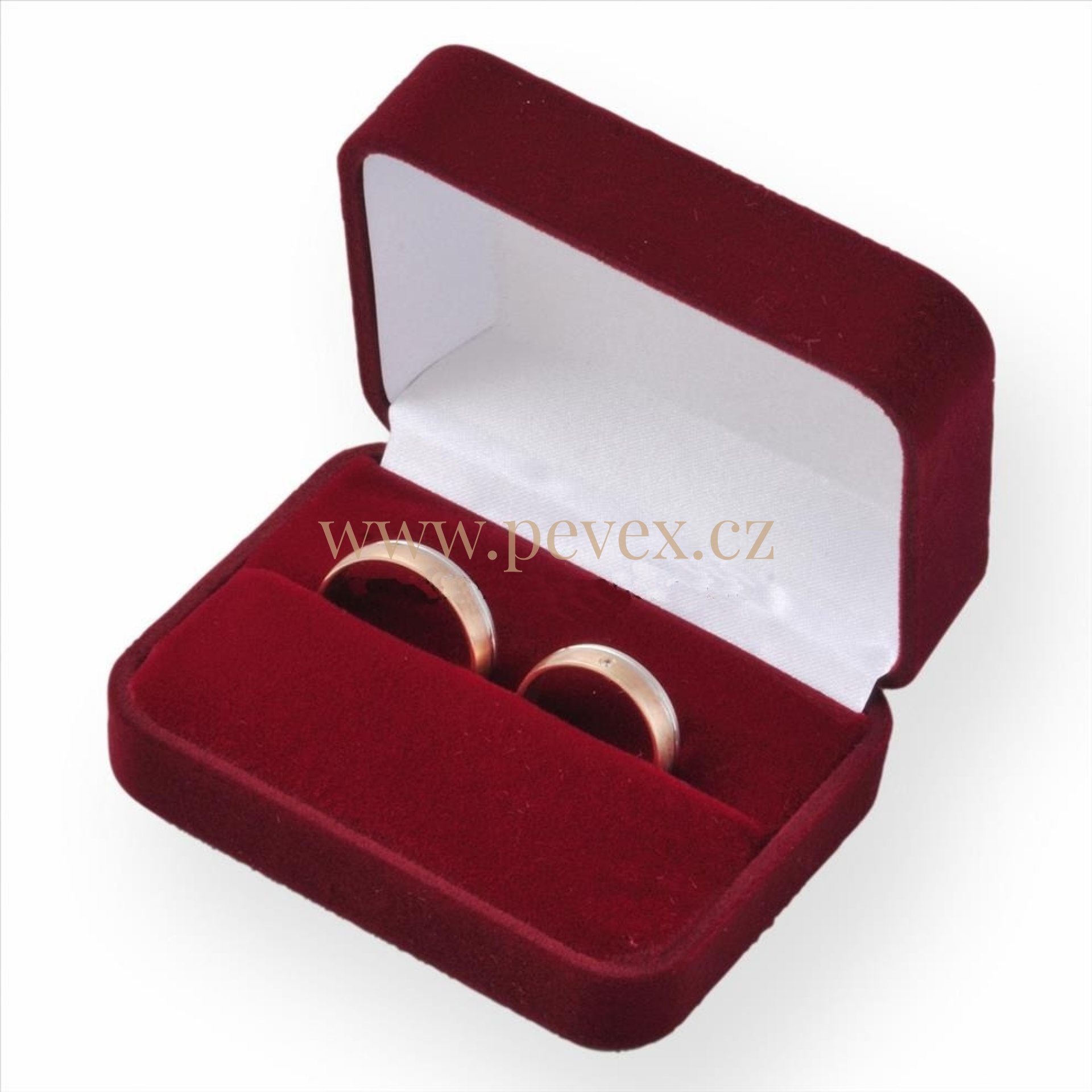 Sametová krabička se sametovou vložkou s výřezy na snubí prsteny.