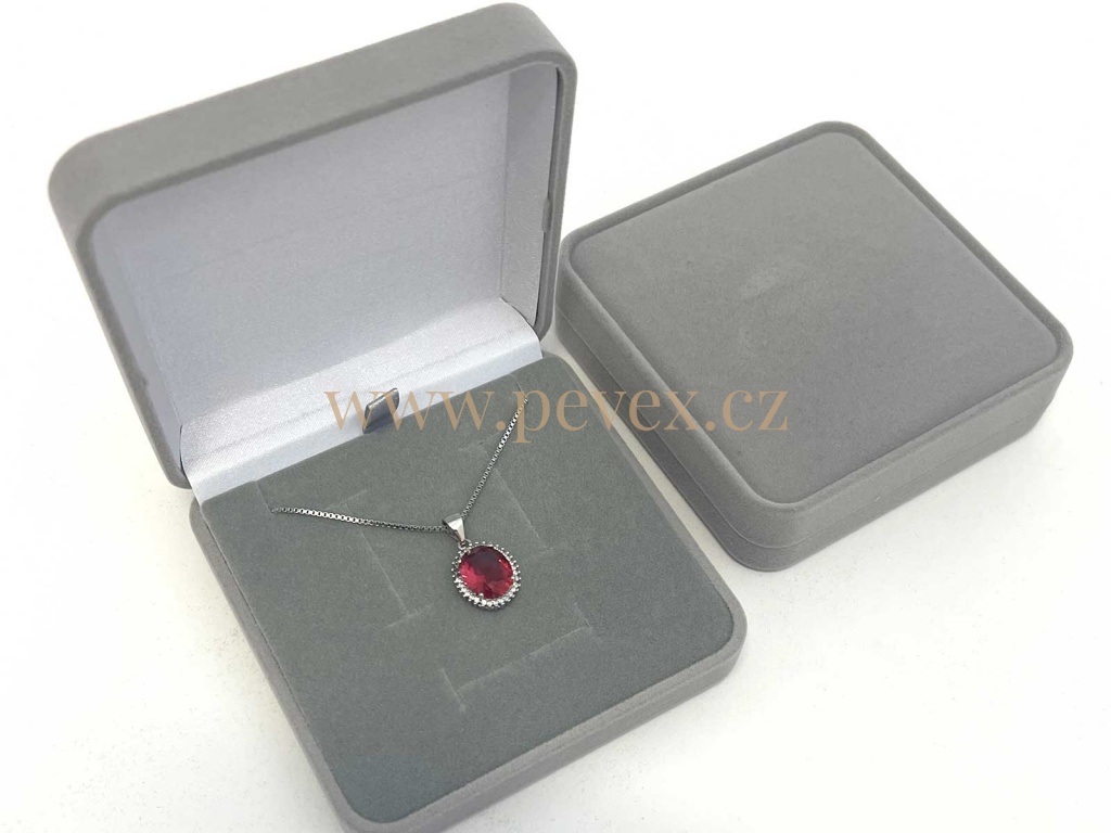 Sametová krabička na střední sadu - řetízek s přívěskem, náušnice, prsten