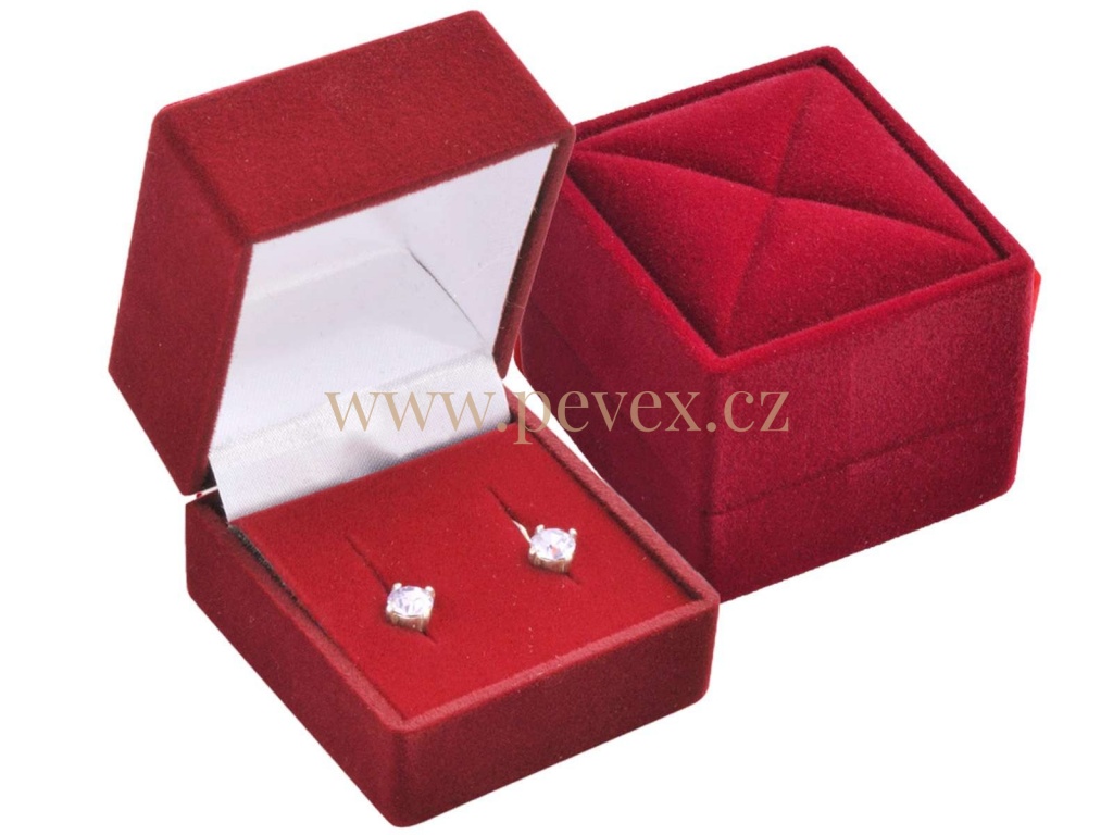 Sametová krabička se sametovou vložkou s výřezy na náušnice nebo snubní prsteny