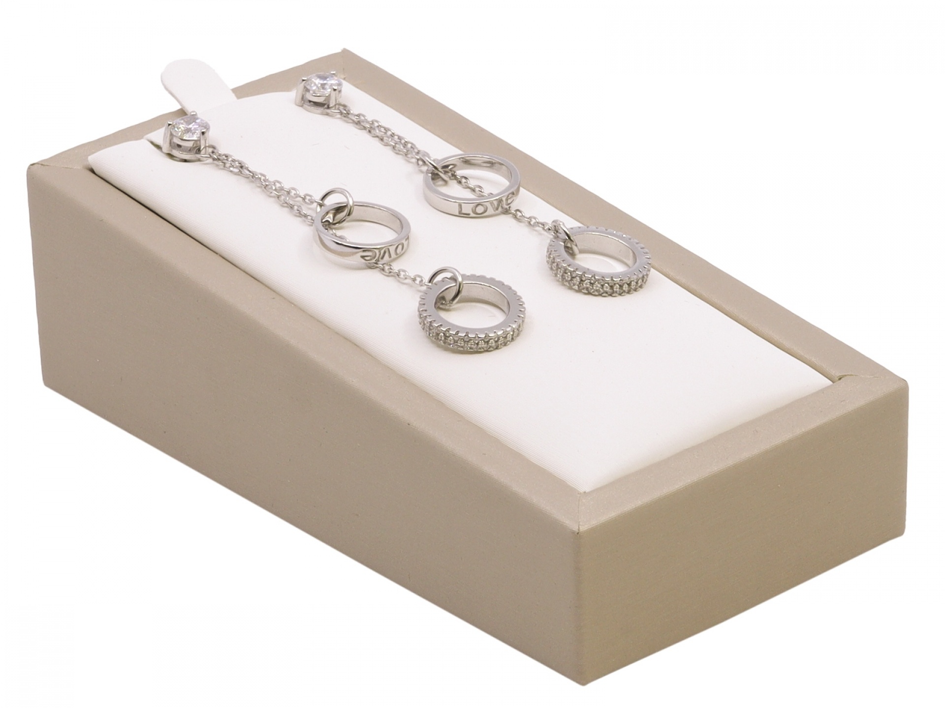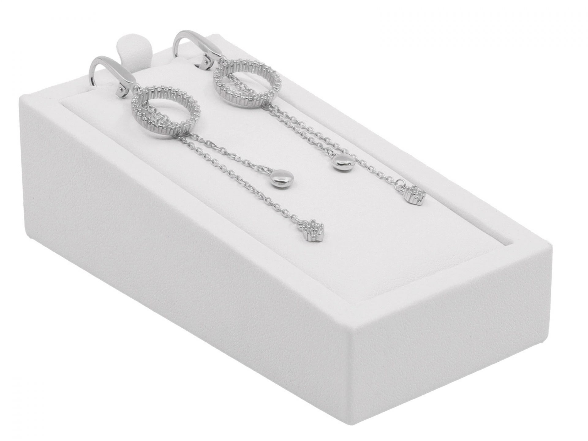 Aranžérské kostky pro vystavení šperků s různými potahovými barvami. Bílá nebo kombinace barevné koženky, případně růžový samet.