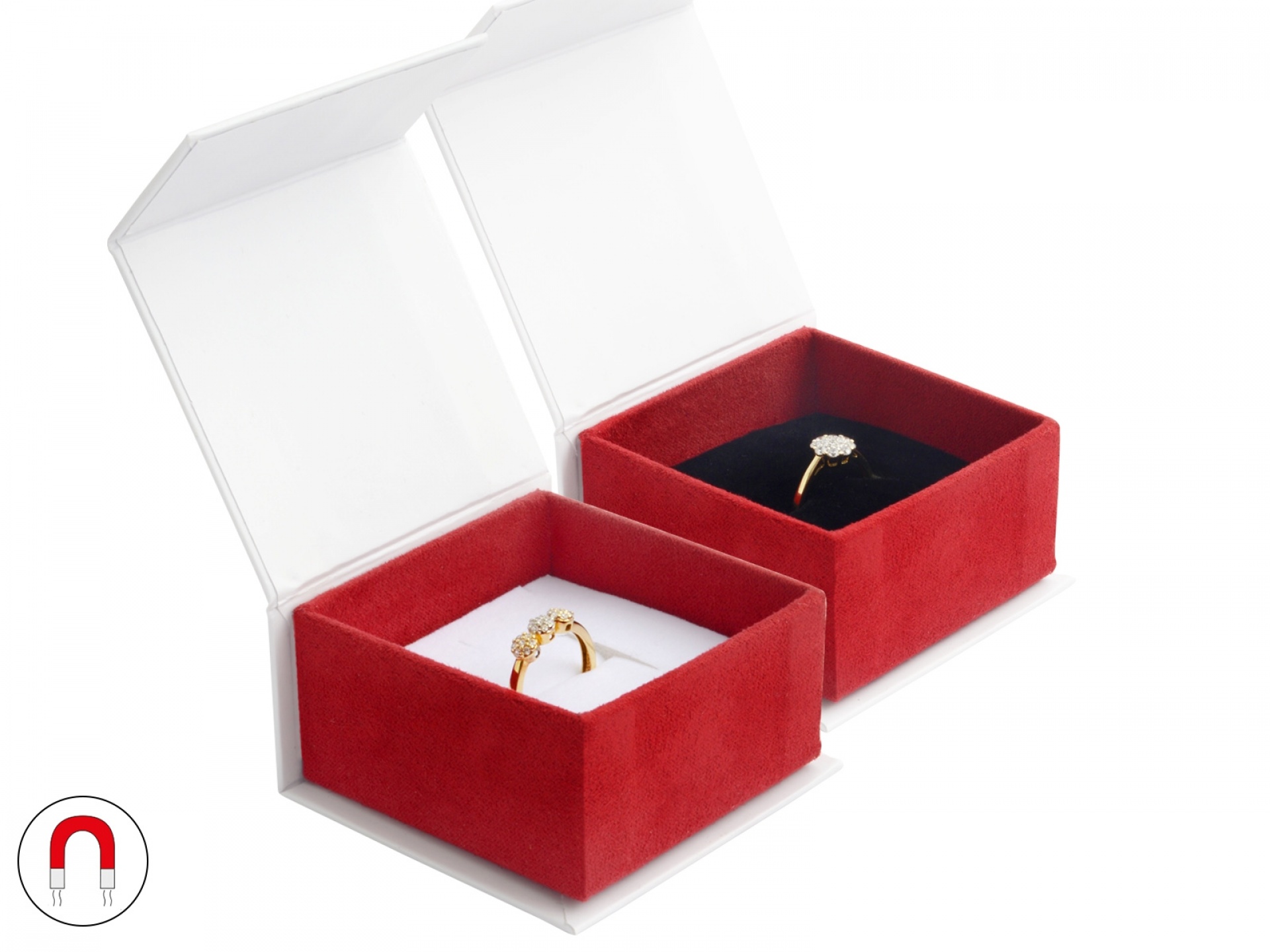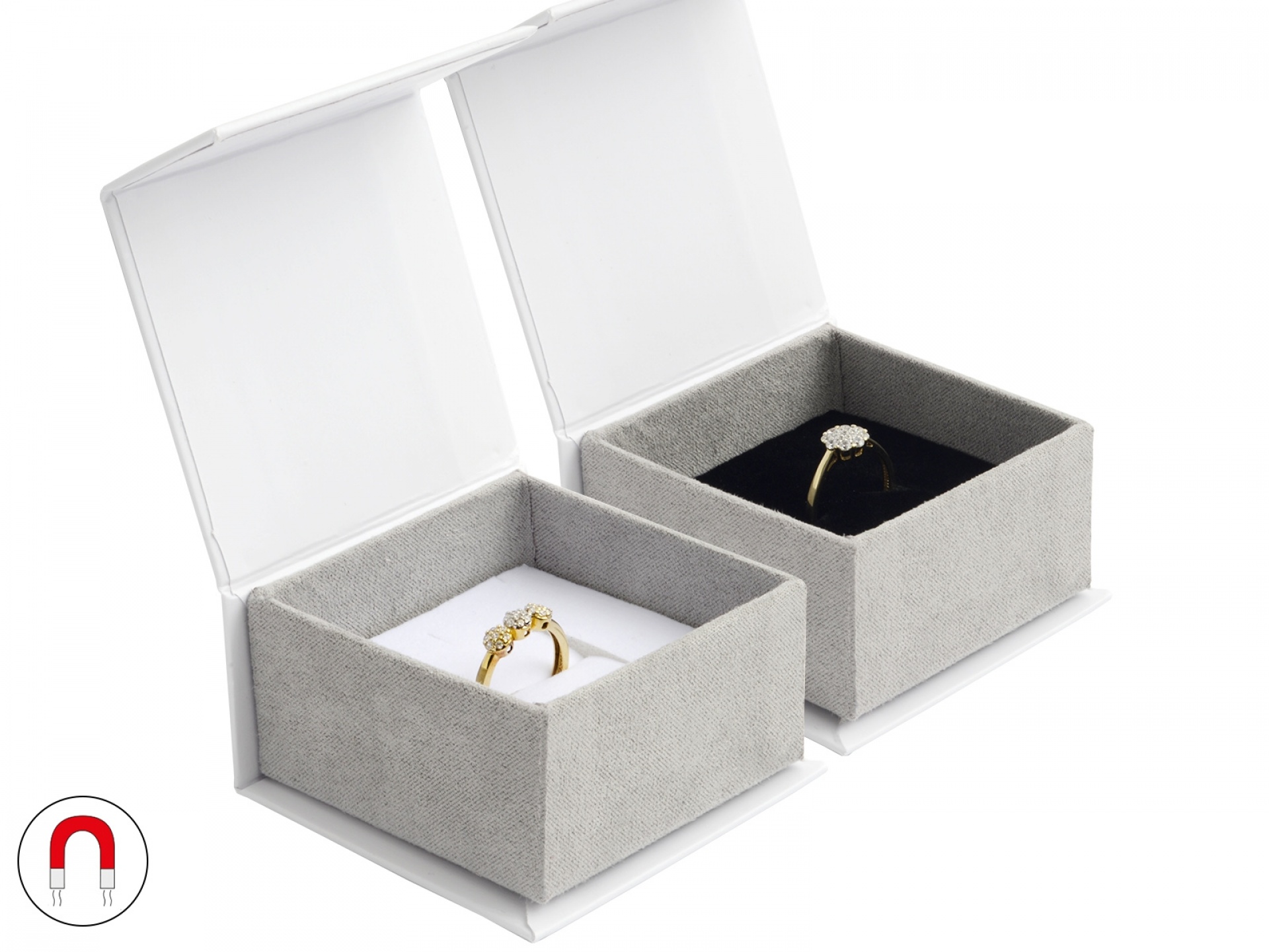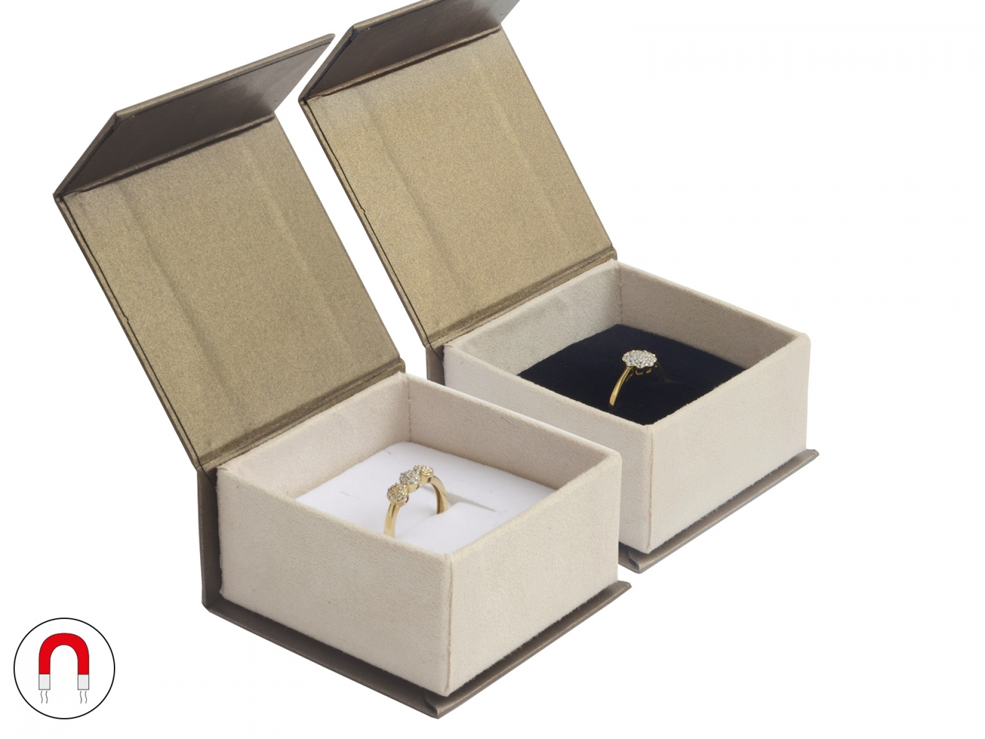 Luxusnější papírové krabičky se zavíráním na magnet v kombinaci dvou barev. Spodní díl potažený sametem a víko potažené perleťovým papírem.