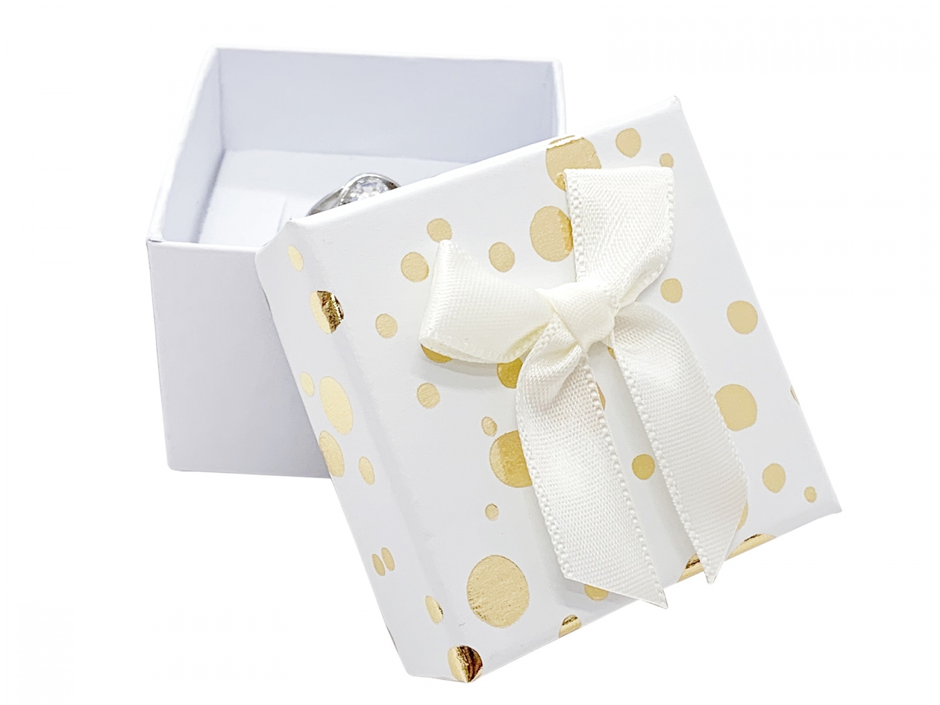 Nové krabičky s krémovou mašlí a molitanem s průseky na umístění šperků.