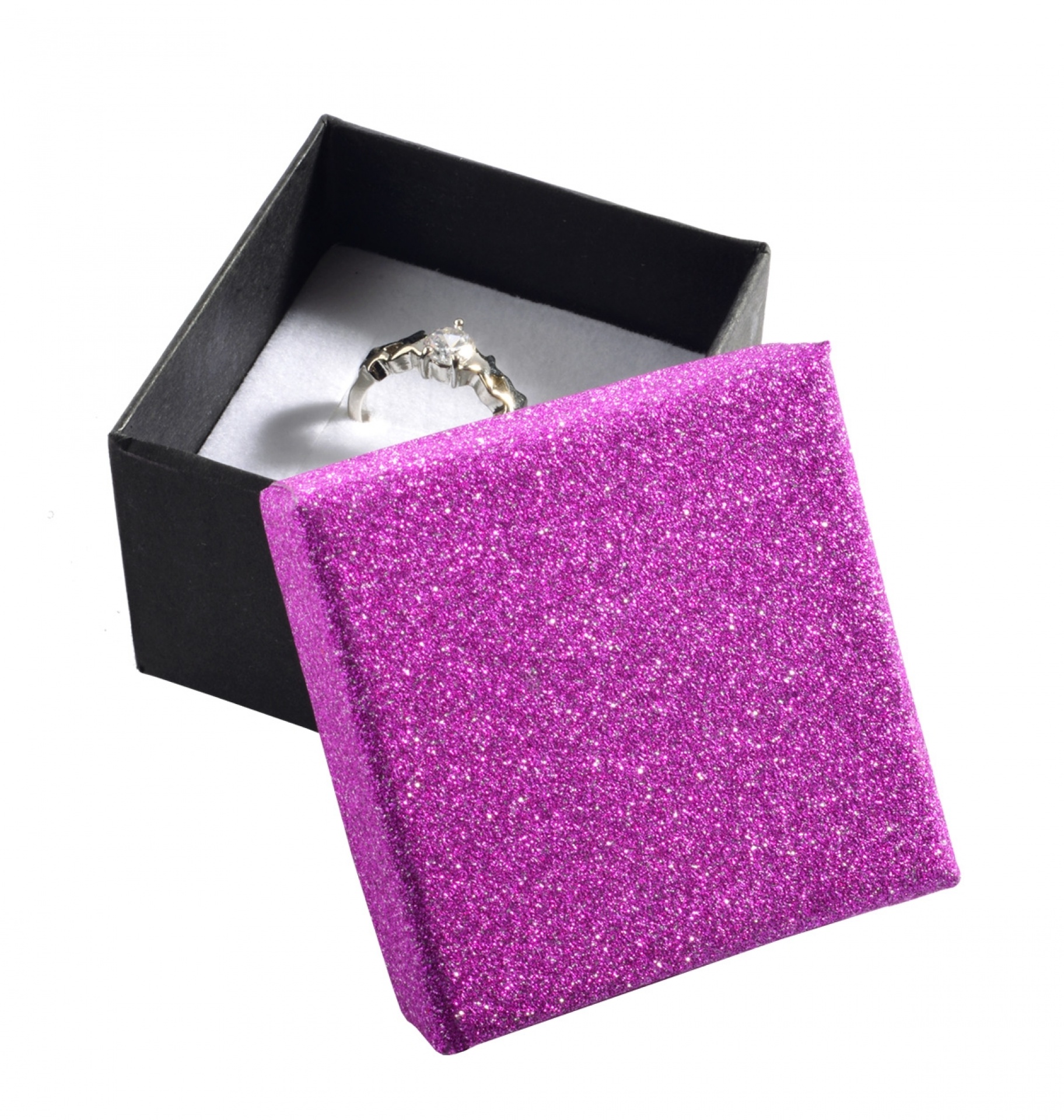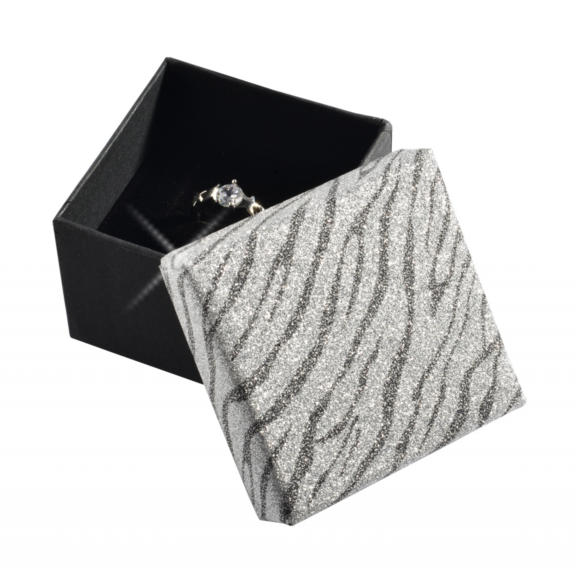 Papírové krabičky potažené třpytivým papírem.