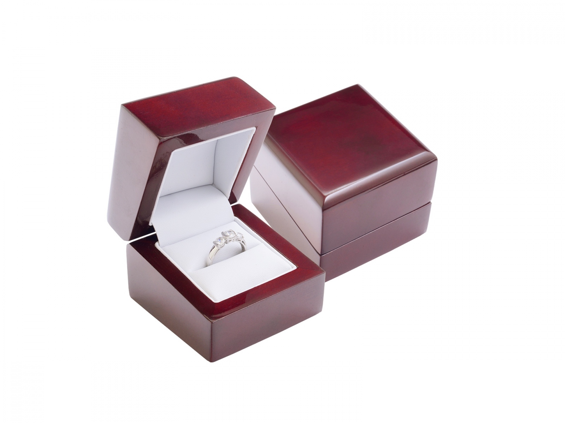 Dřevěná krabička na šperky, koženková vložka.