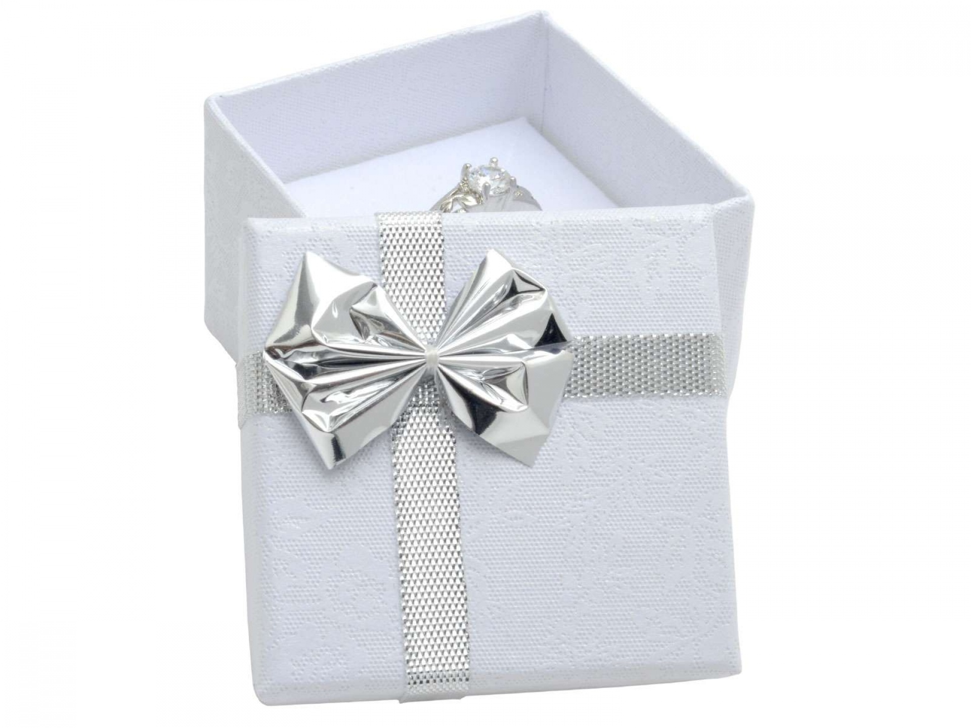 Papírová krabička s mašlí a molitanovou vložkou s průseky na šperky.