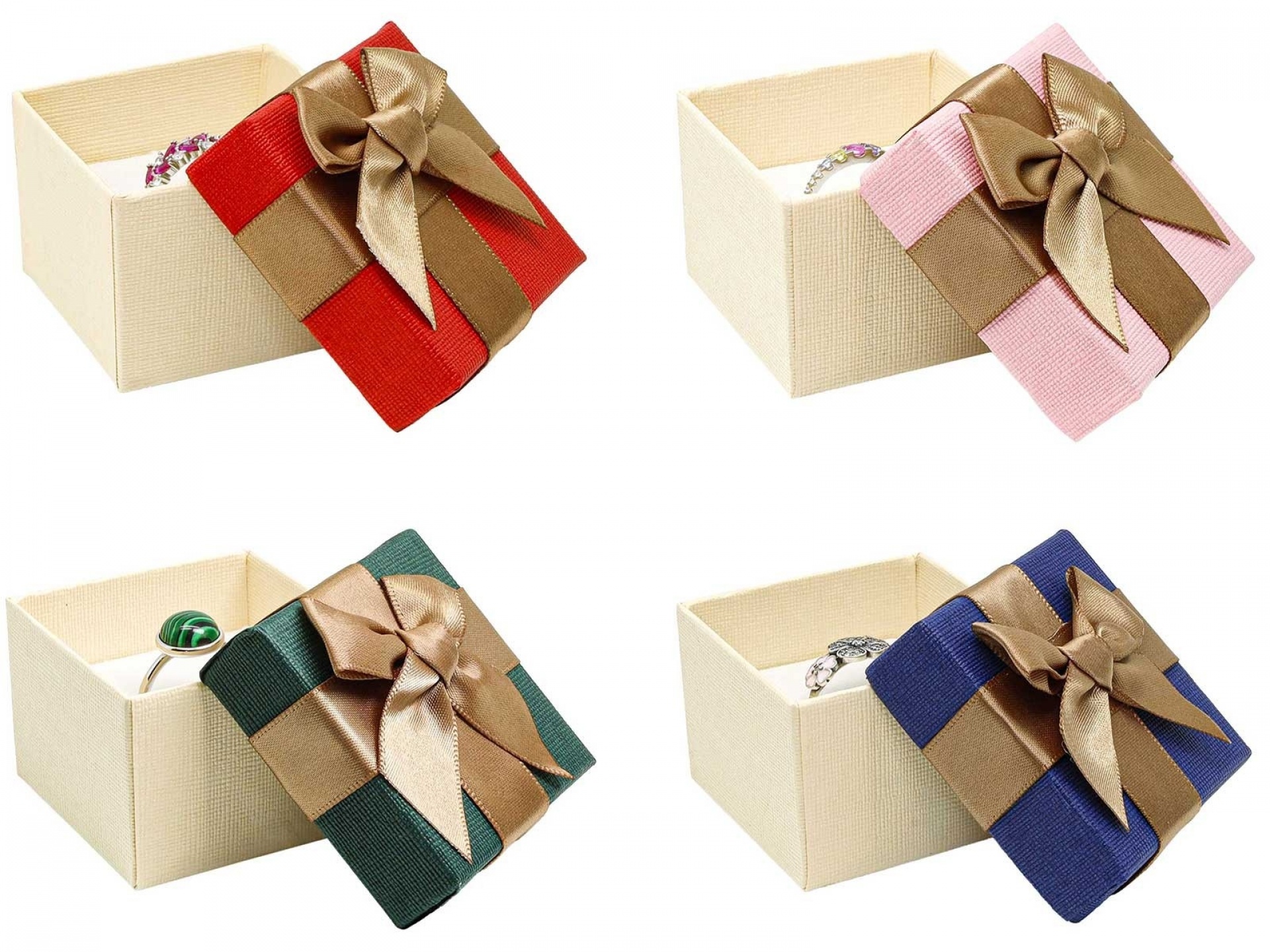 Papírové krabičky na šperky se saténovou mašlí a molitanovou vložkou s průseky dodávané v mixu barev.