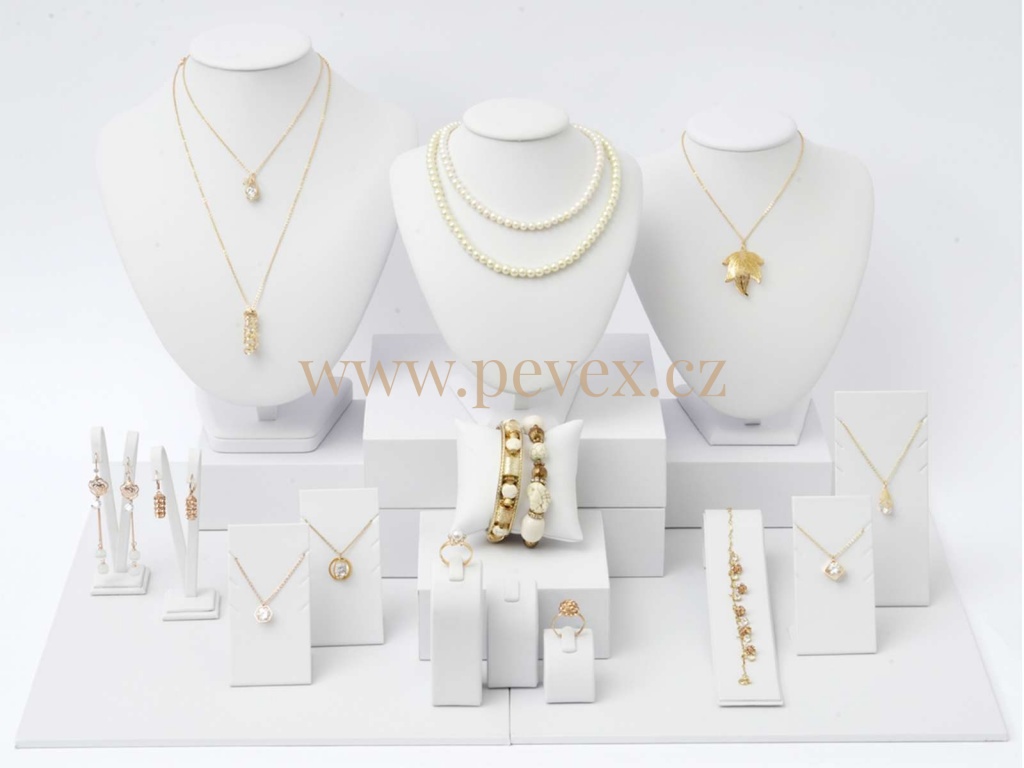 Aranžérská sestava na vystavení šperků. Komponenty potažené koženkou.