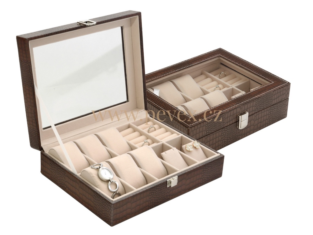 255x80x200 mm, hnědá, šperkovnice na hodinky, koženka