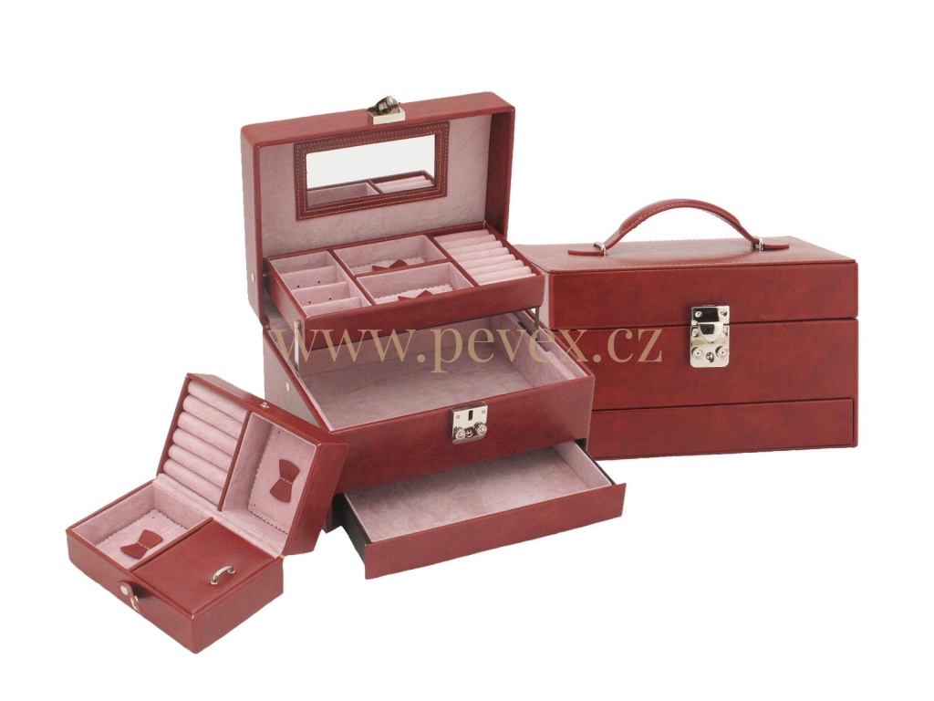 250x170x142 mm, hnědá, šperkovnice, koženka