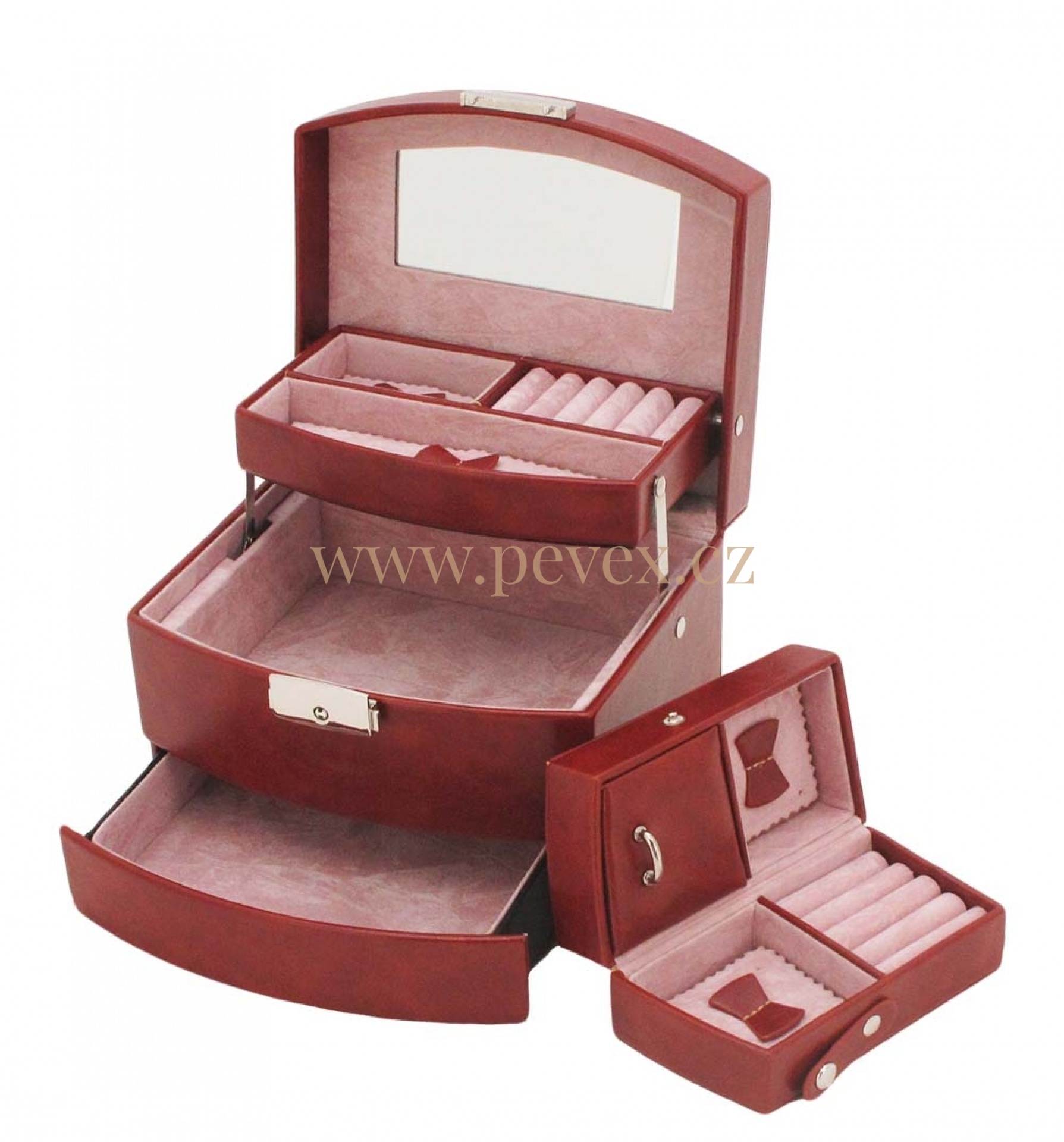 188x150x131 mm, hnědá, šperkovnice, koženka