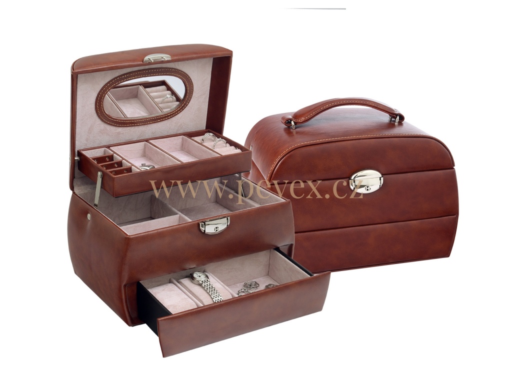 240x160x200 mm, hnědá, šperkovnice, koženka