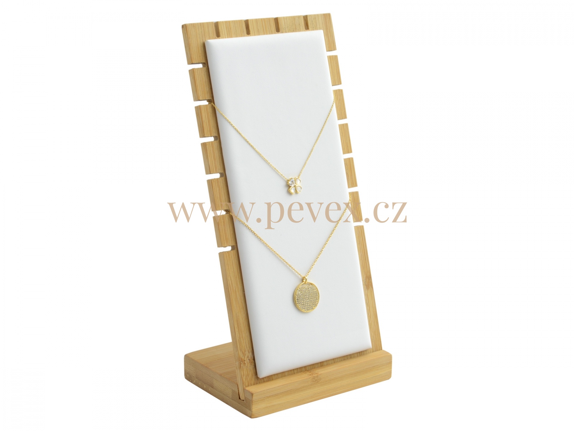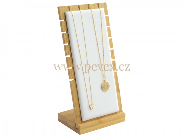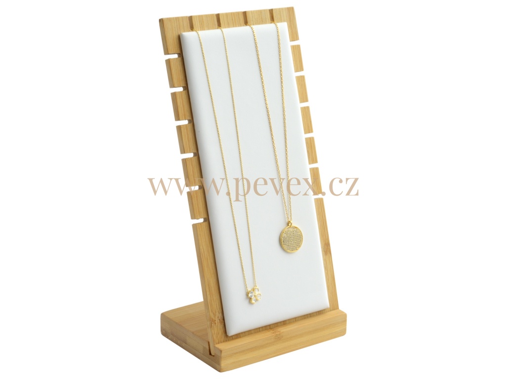 Dřevěný stojánek s koženkou na řetízek, řetízek s přívěskem, náramek - 10 pozic