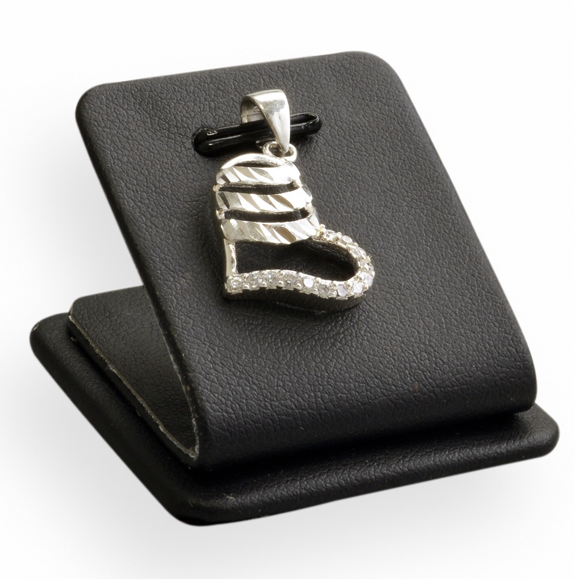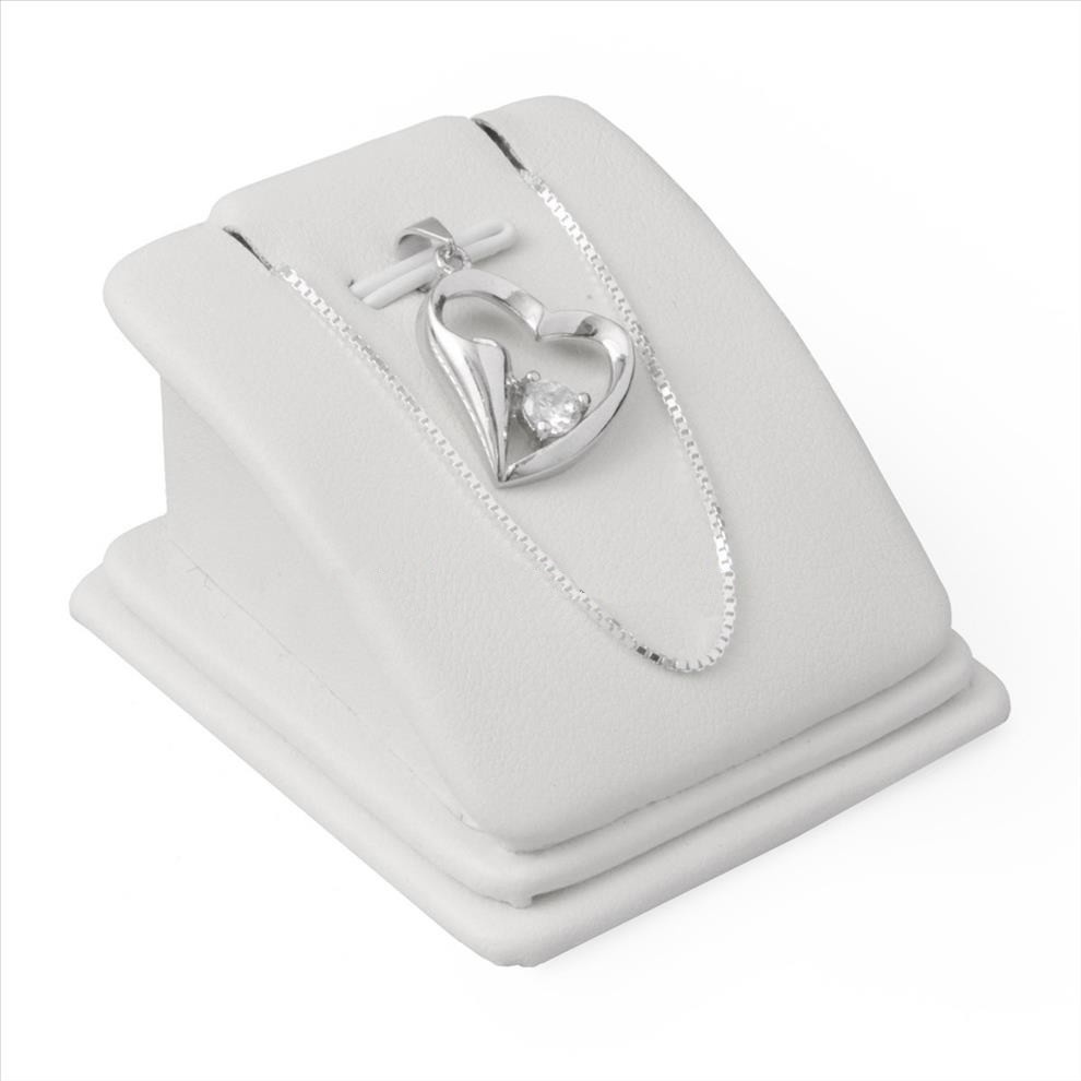 Aranžerský materiál pro vystavení šperků potažený bílou, krémovou a černou koženkou.