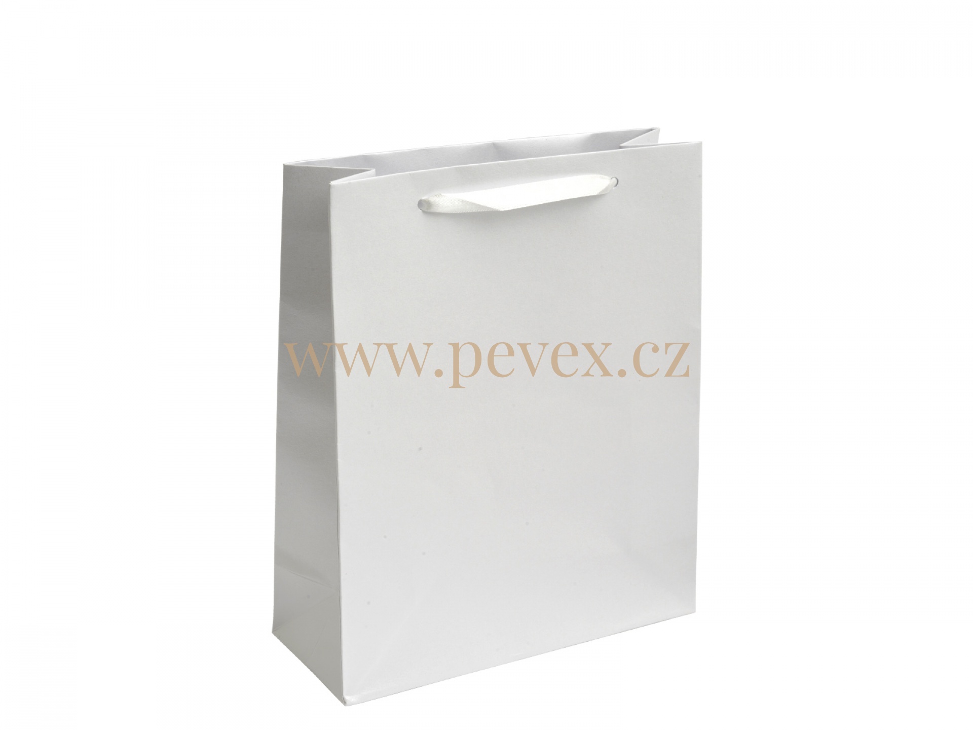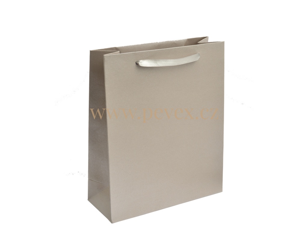Papírová taška se saténovými uchy.