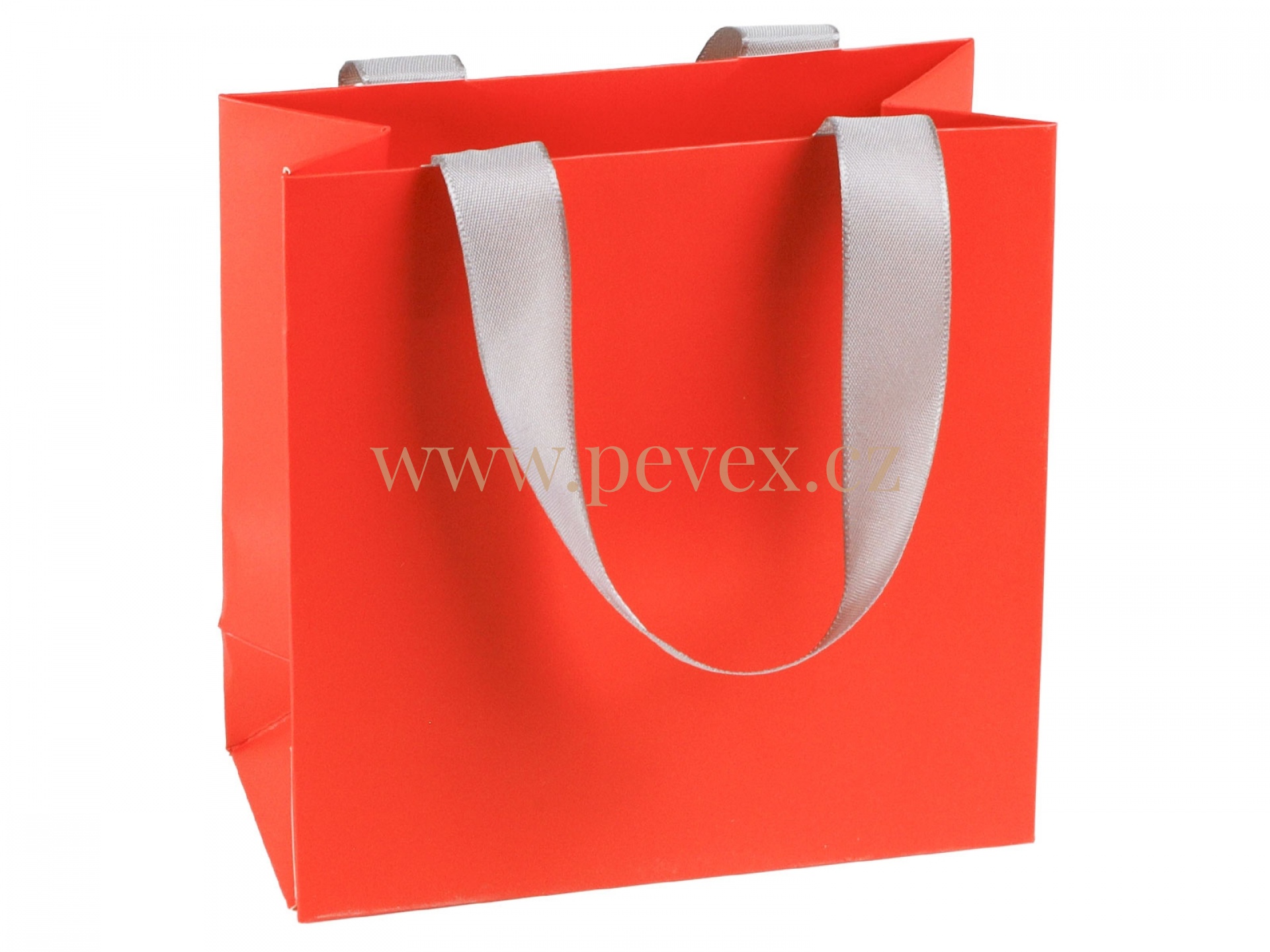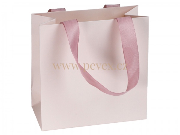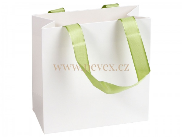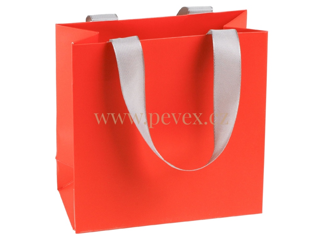Dárková papírová taška se saténovými uchy v různých barvách.