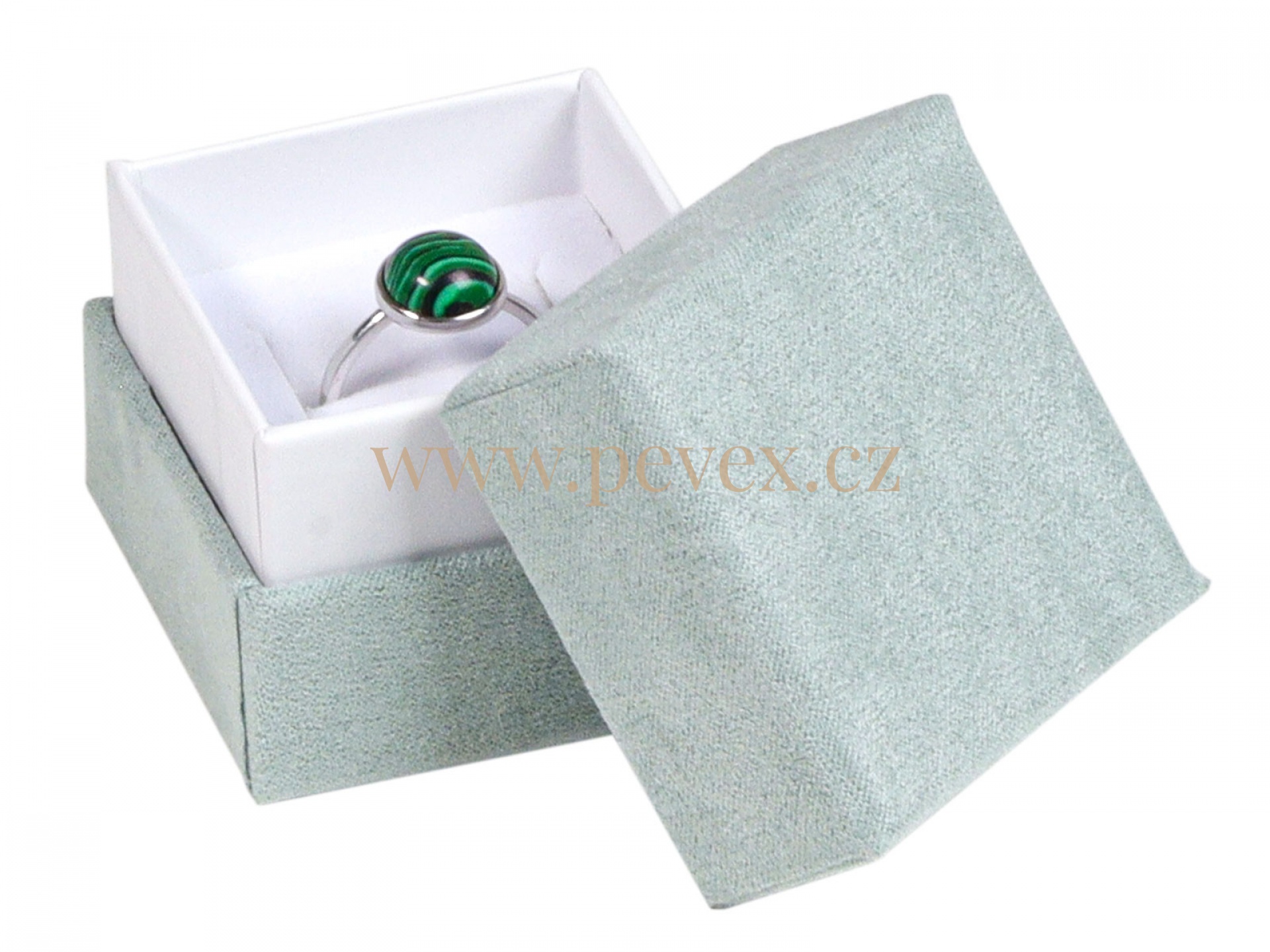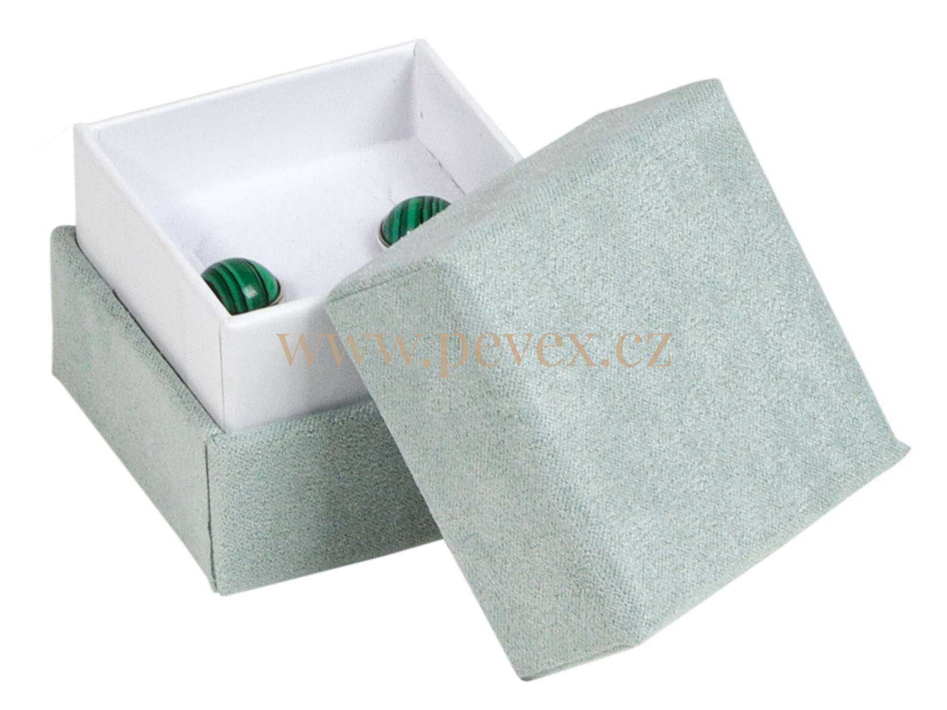 Krabička potažená velurovou textilií s vložkou pro prsten nebo náušnice.