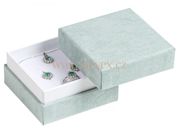 Krabička potažená velurovou textiilí s vložkou pro sadu šperků.
