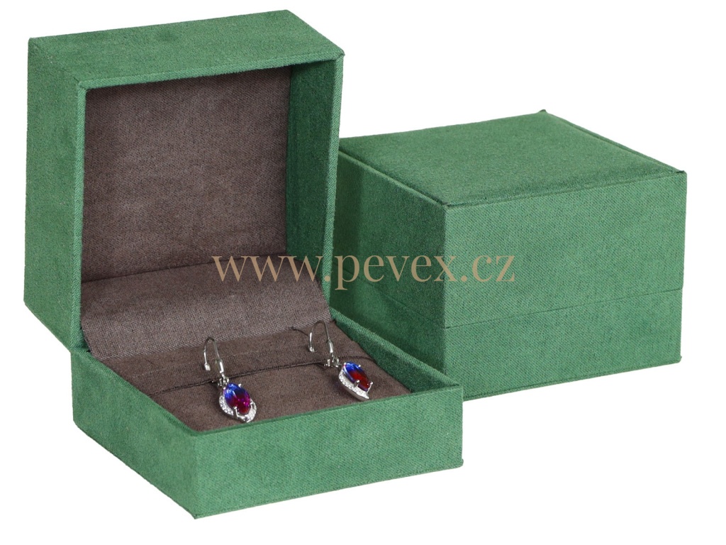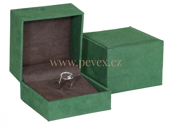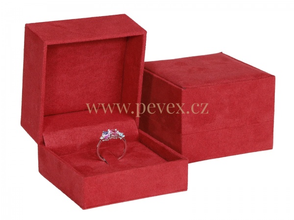 Luxusní textilní krabička s otočnou vložkou pro prsten nebo náušnice.